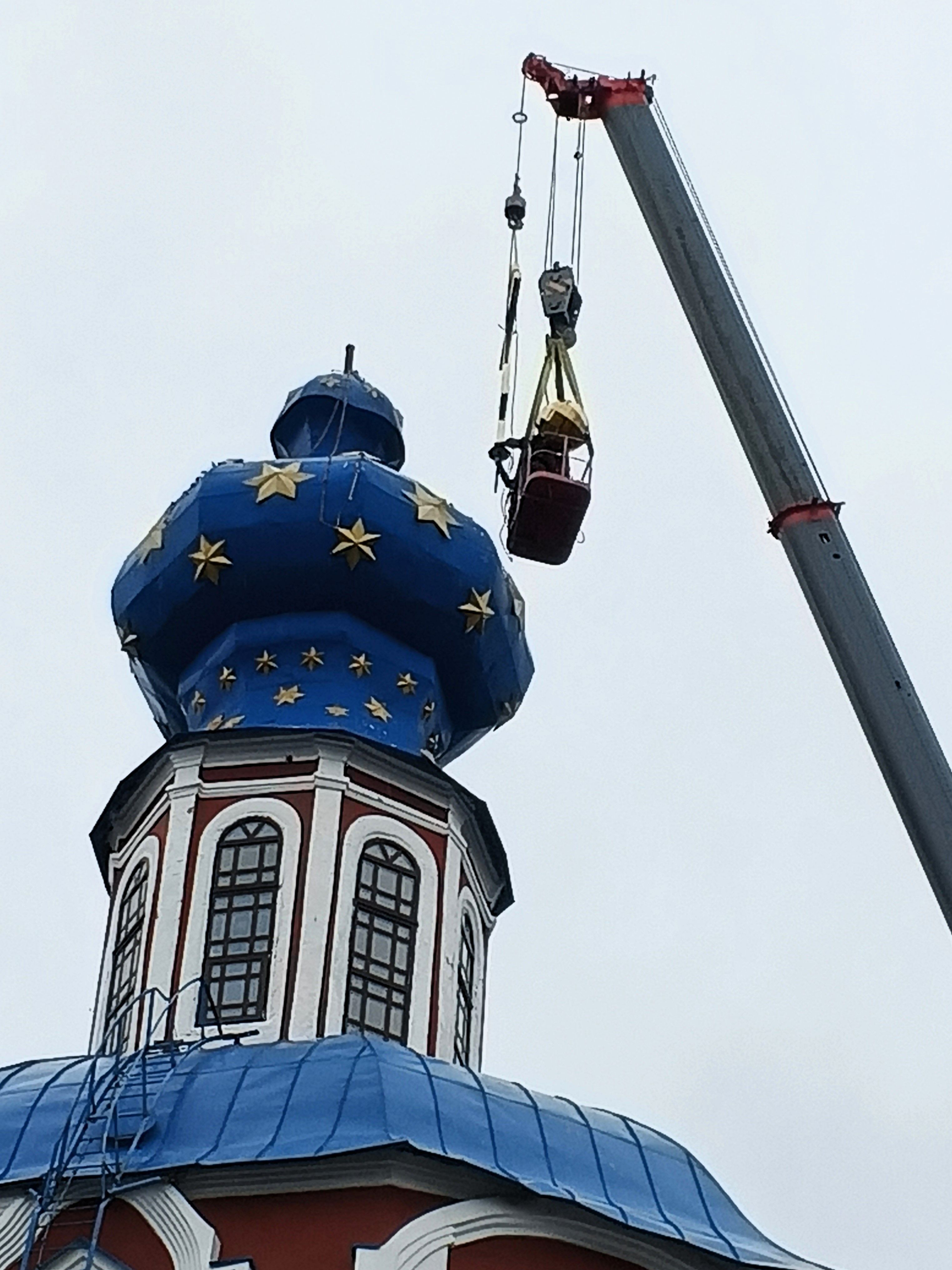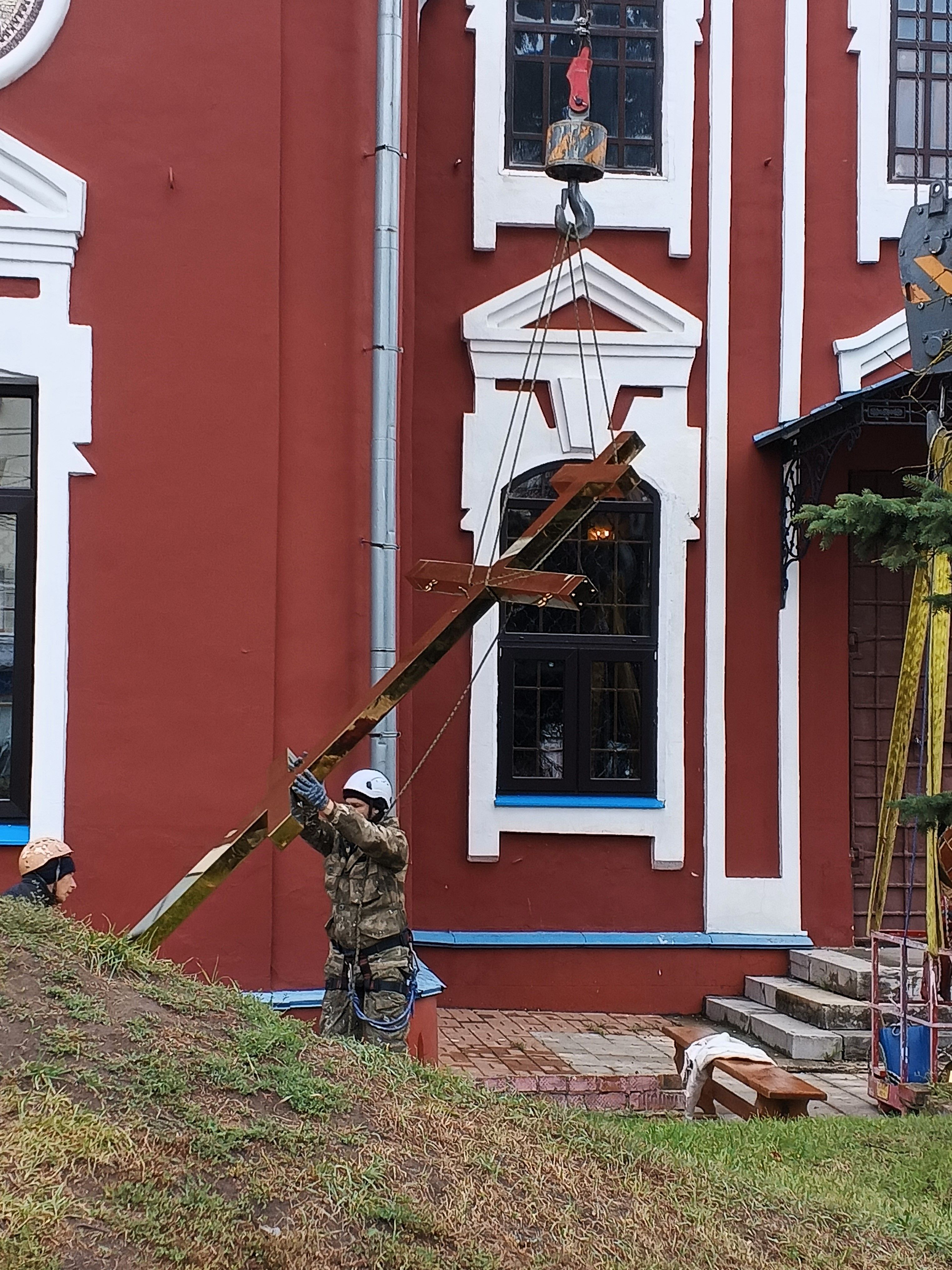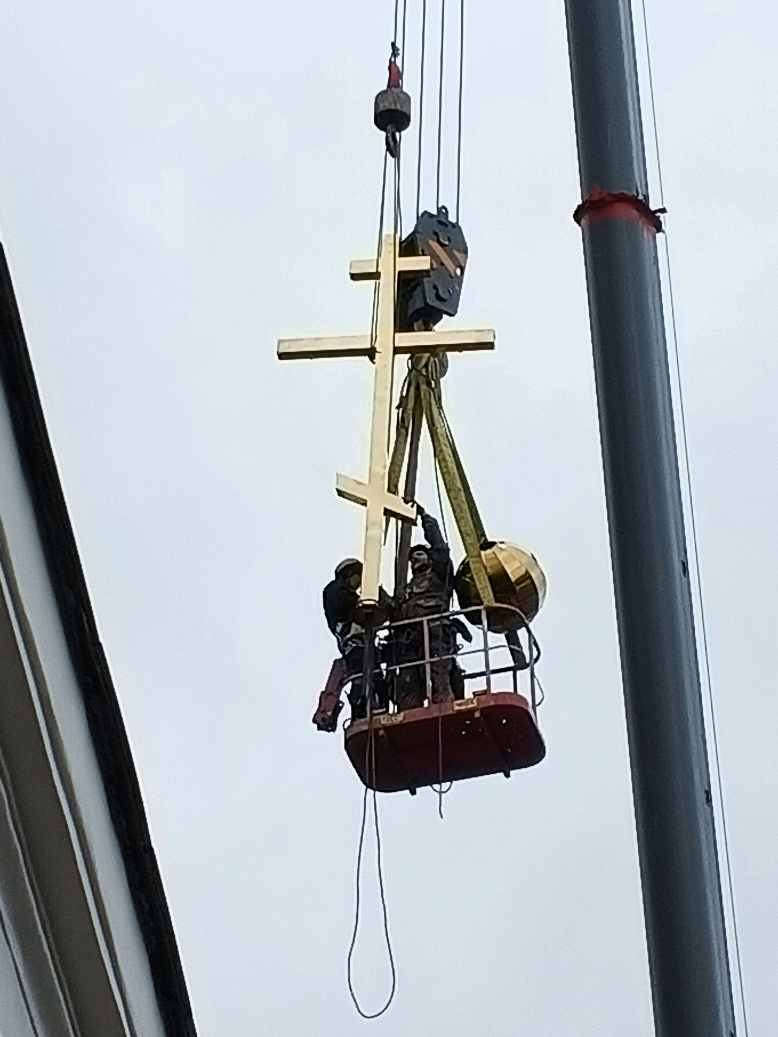 Всё, по милости Божией, и по молитвам клира, и прихожан храма, и верующих людей, прошло благополучно. На главном куполе водружен честной Крест Христов – орудие нашего спасения.