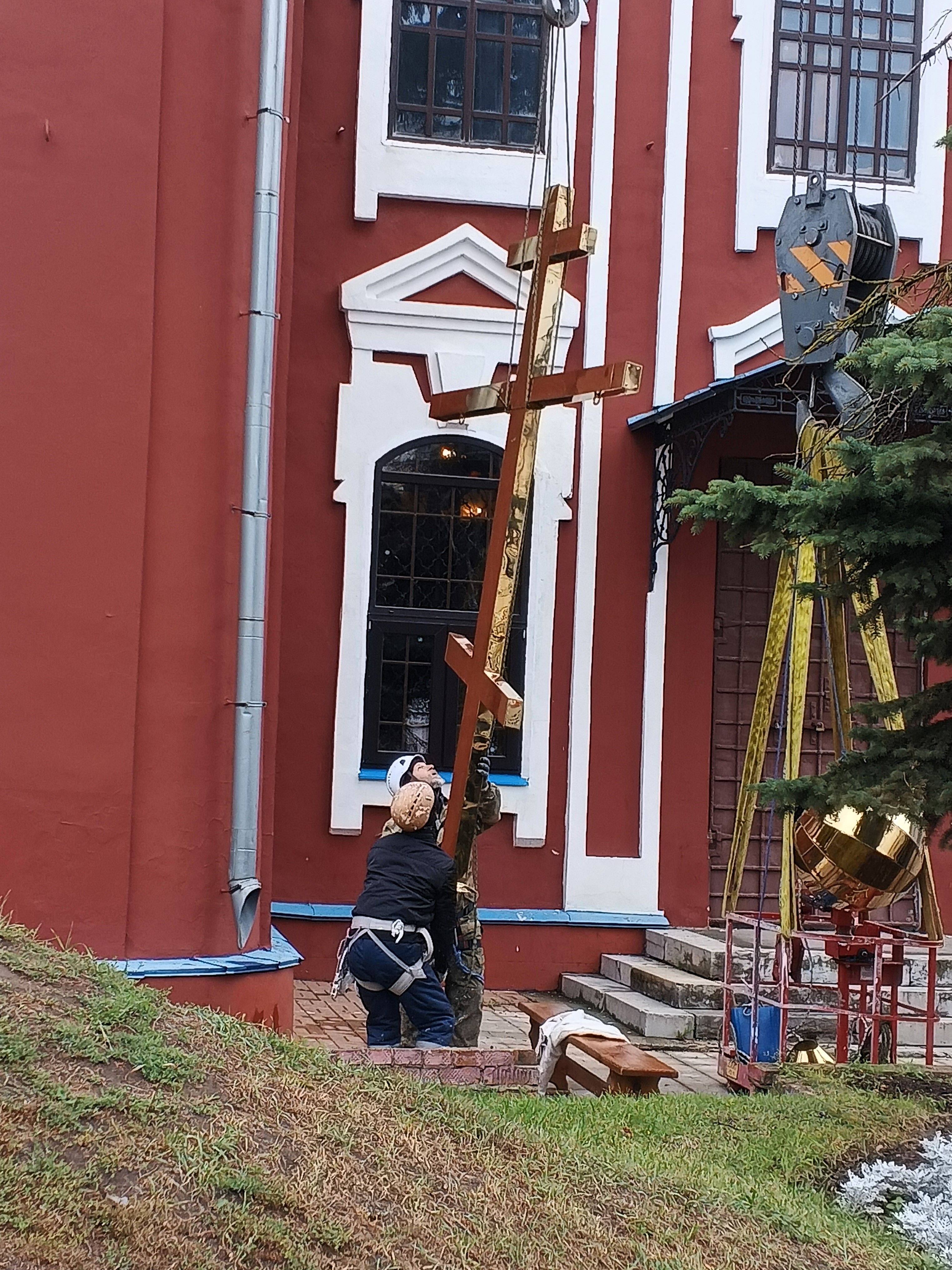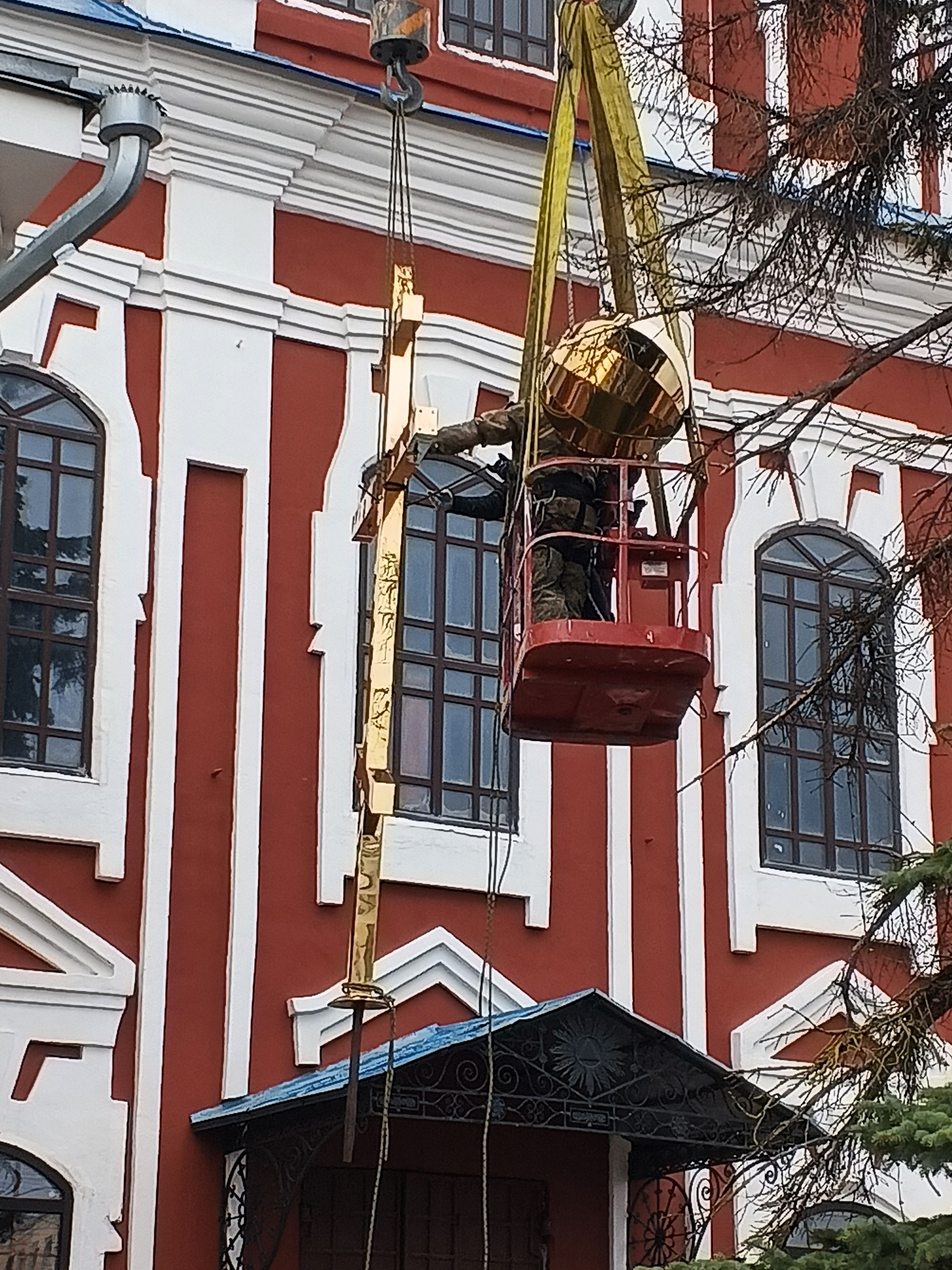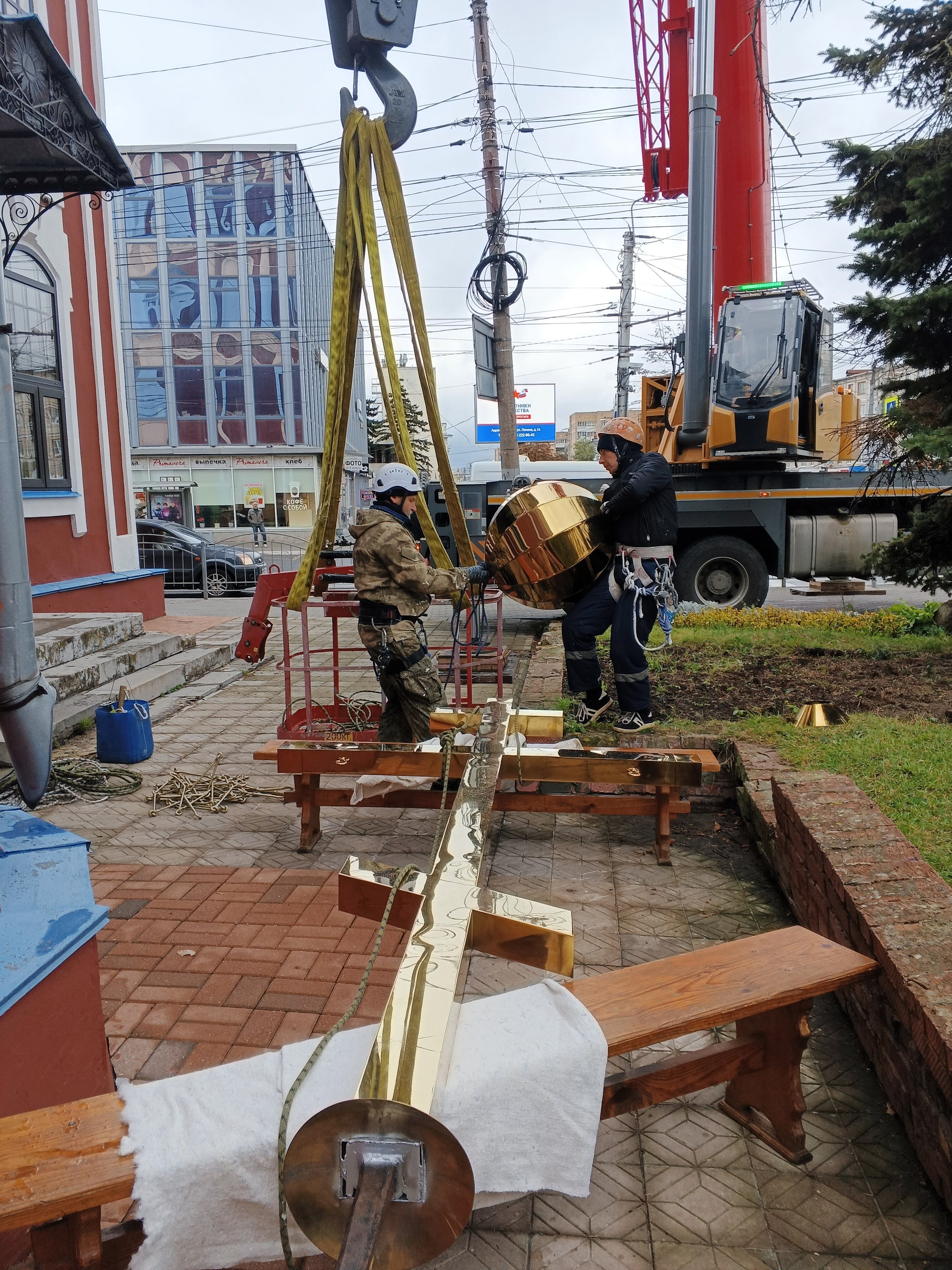 Всё, по милости Божией, и по молитвам клира, и прихожан храма, и верующих людей, прошло благополучно. На главном куполе водружен честной Крест Христов – орудие нашего спасения.