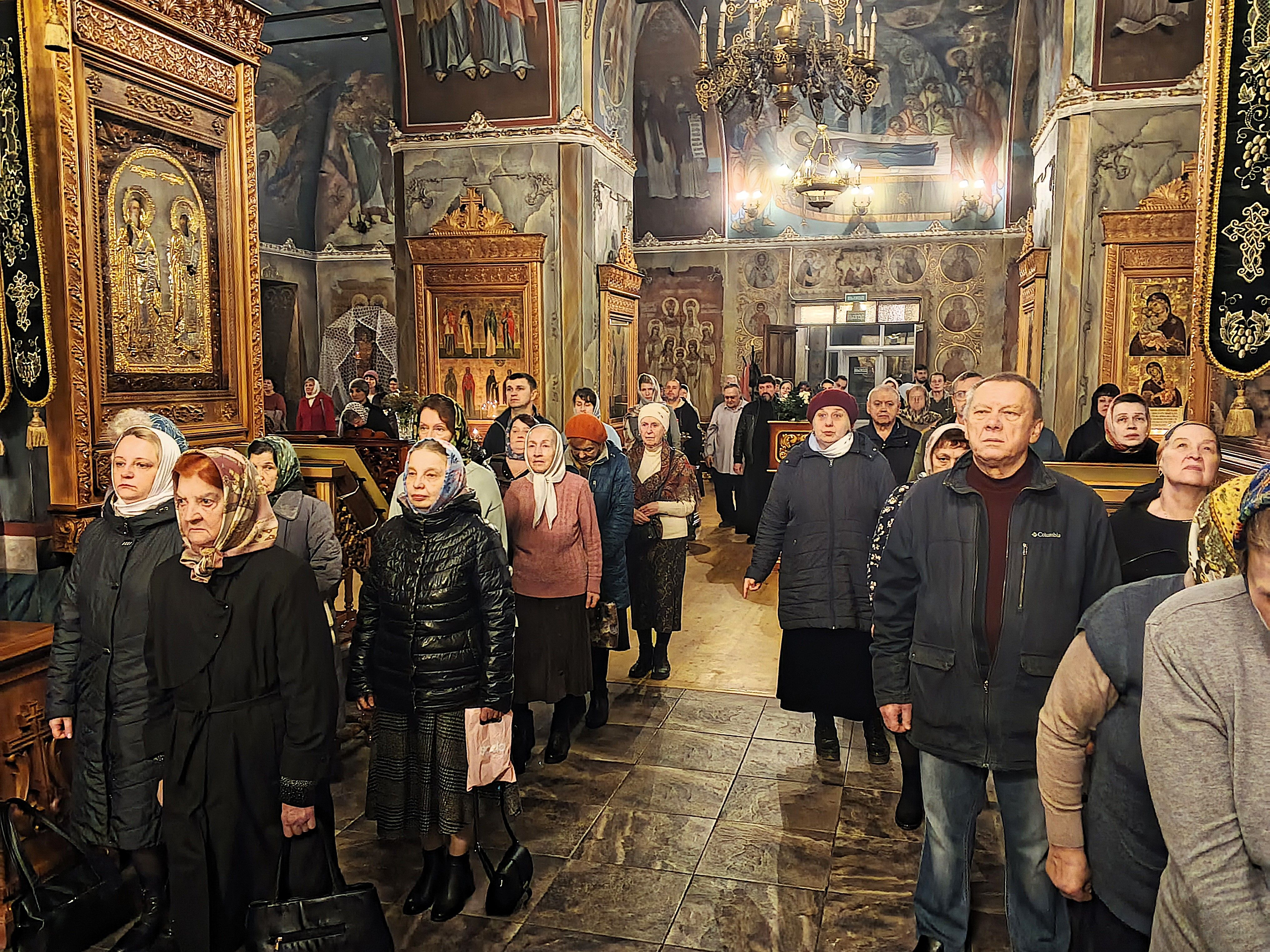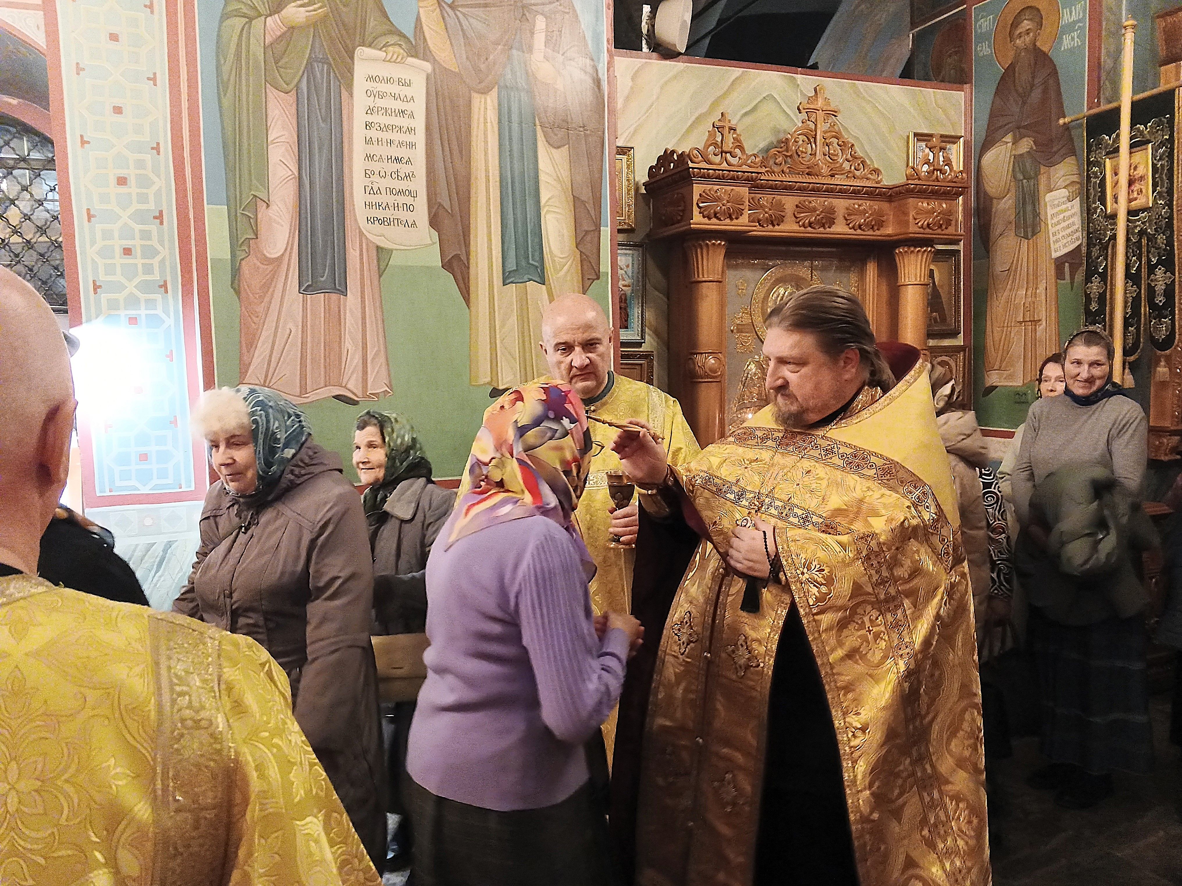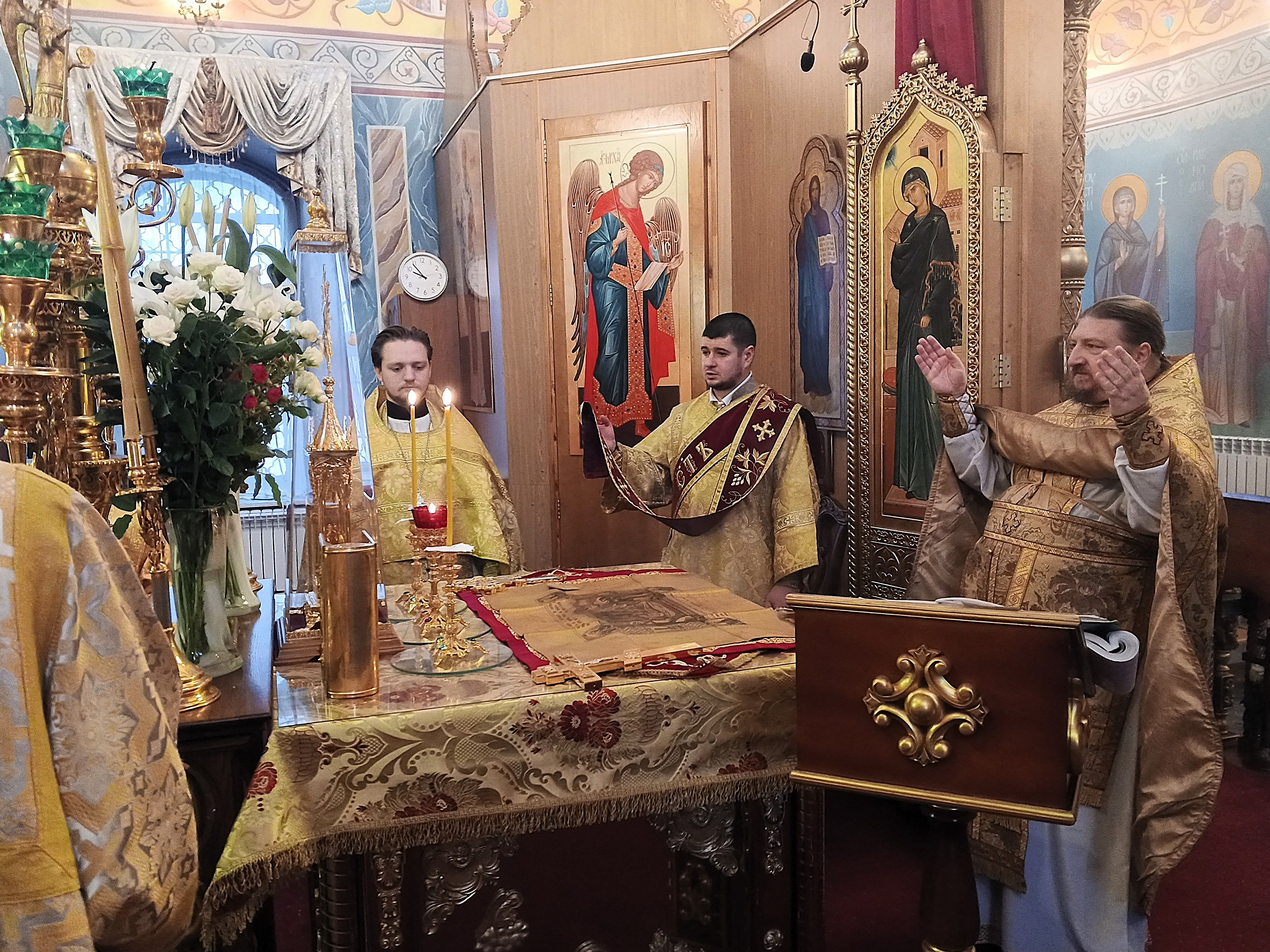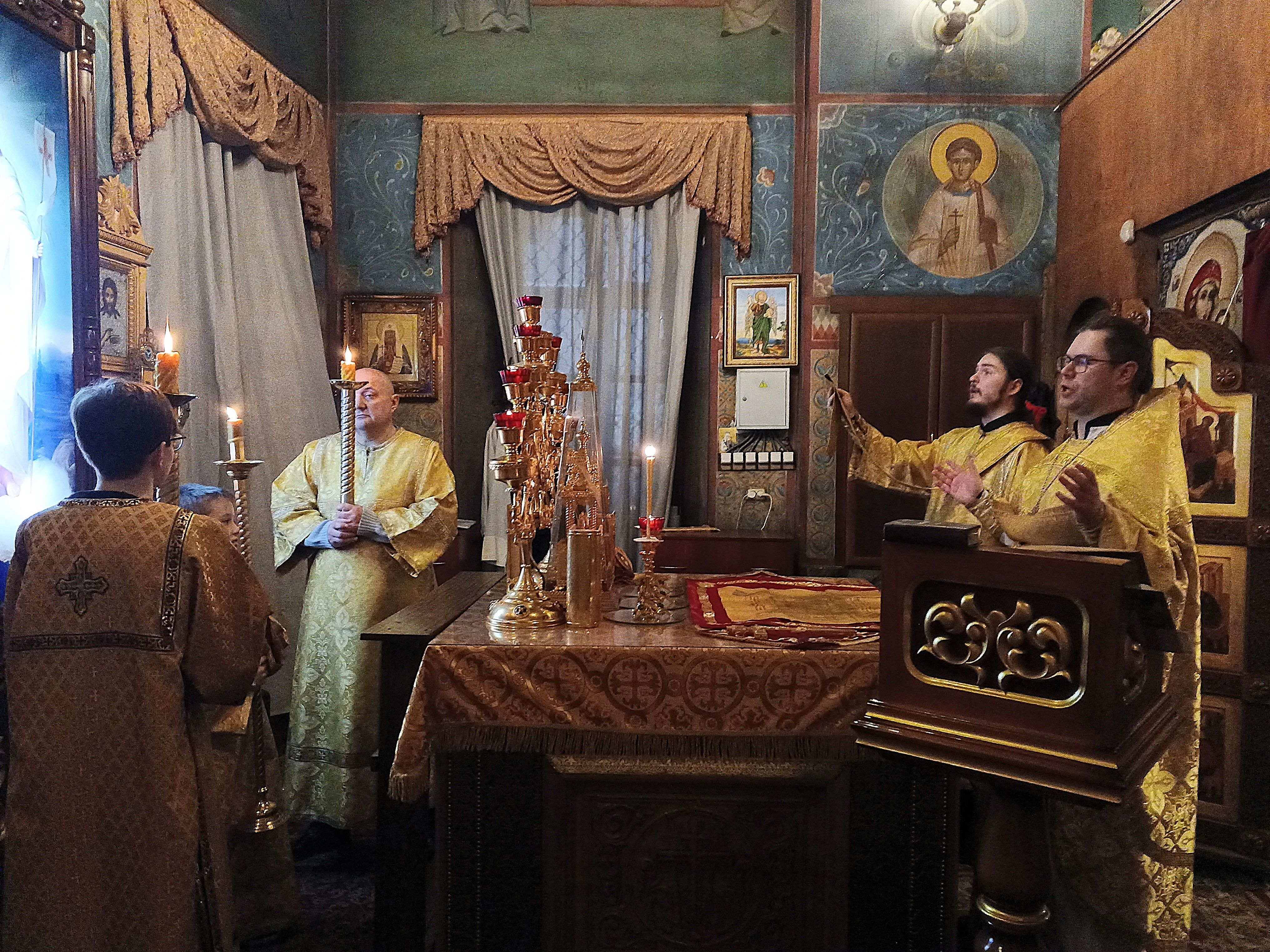 Позднюю литургию в центральном приделе совершил игумен Мефодий (Пронькин) в сослужении иерея Анатолия Кукушкина и диакона Виктора Старосты. Исповедь принимал иерей Павел Степанюк.