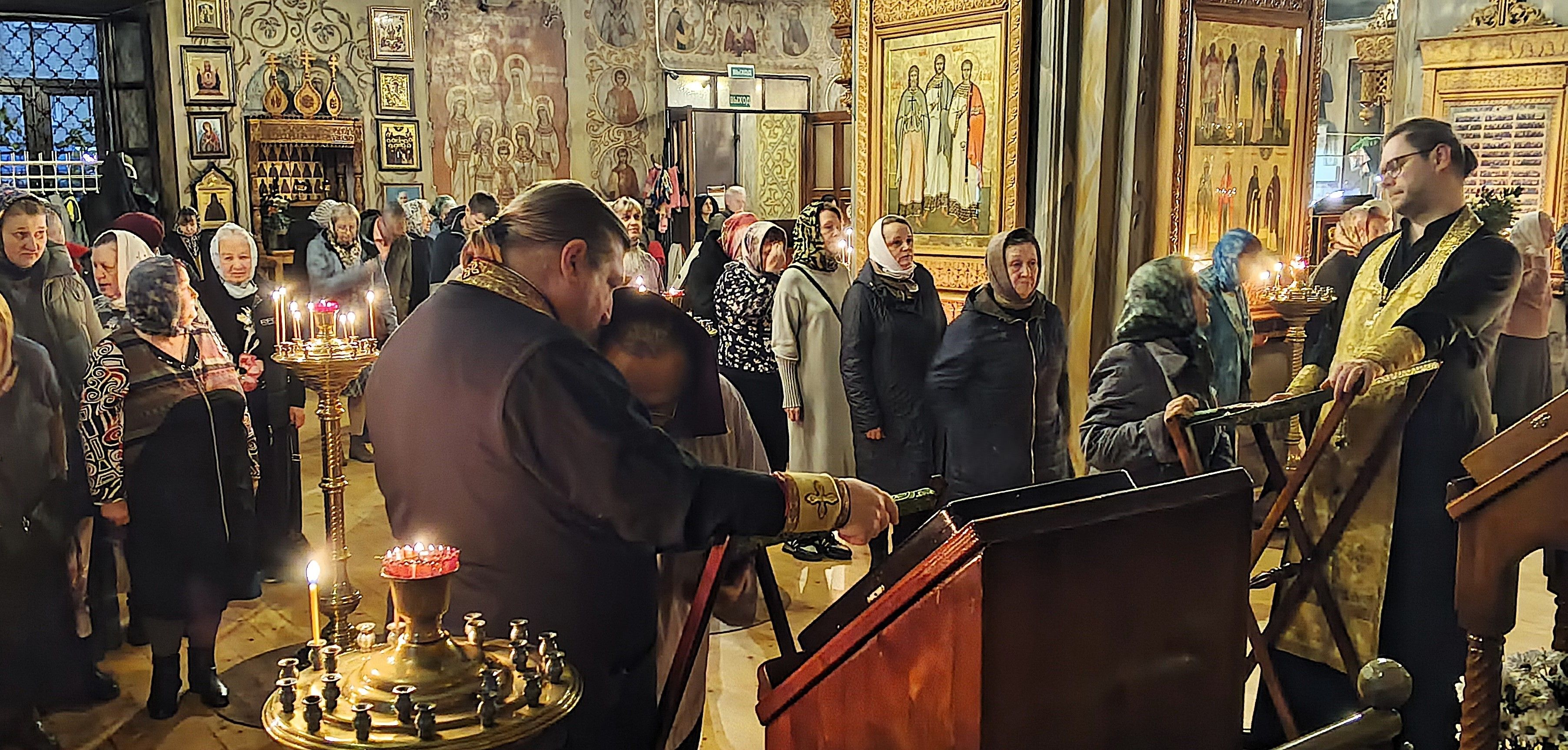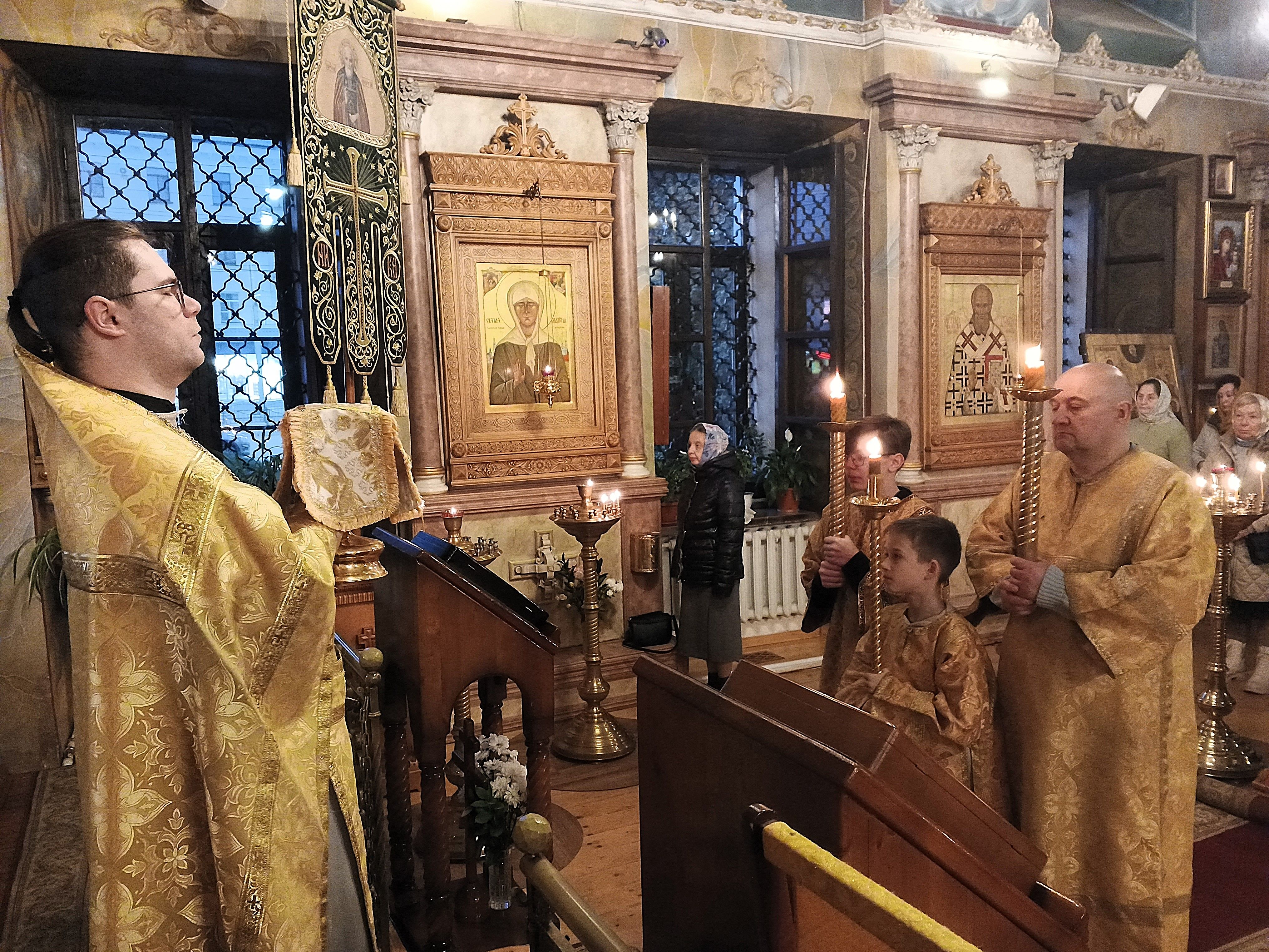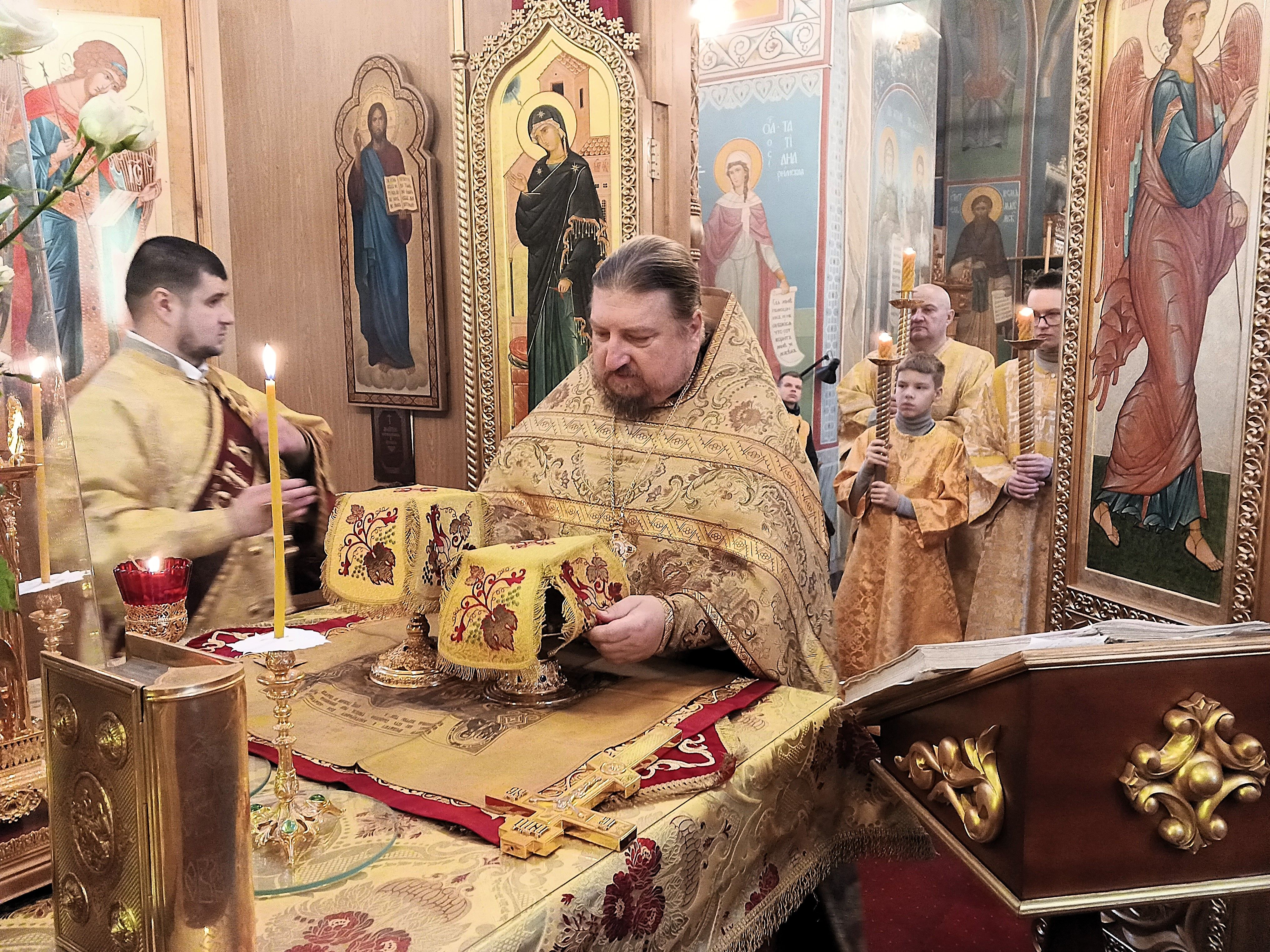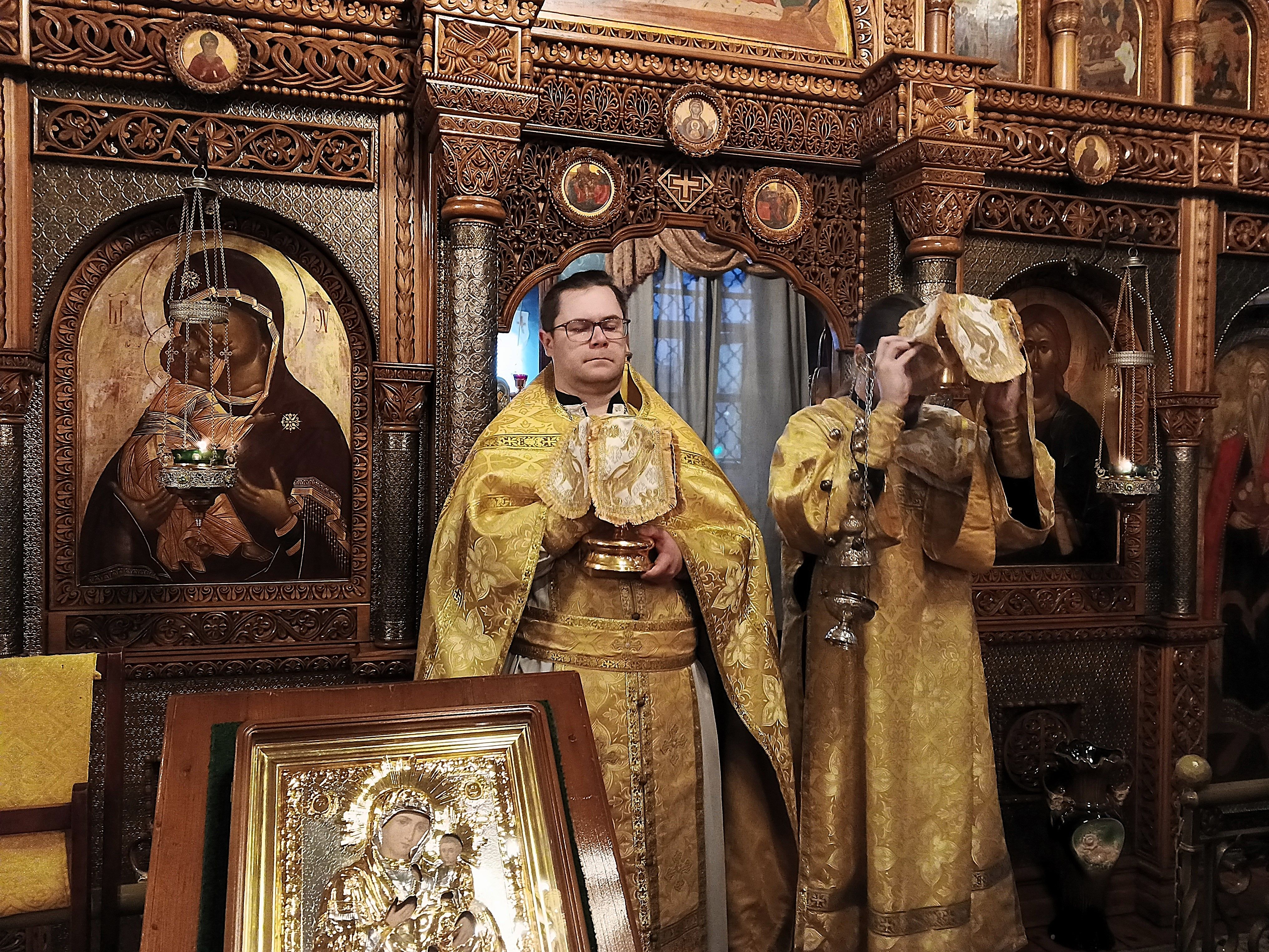 Позднюю литургию в центральном приделе совершил игумен Мефодий (Пронькин) в сослужении иерея Анатолия Кукушкина и диакона Виктора Старосты. Исповедь принимал иерей Павел Степанюк.