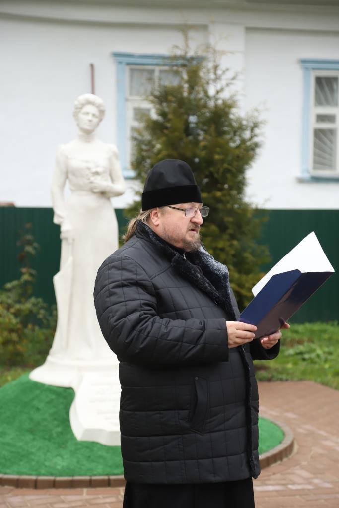 Игумен Мефодий (Пронькин) возглавил торжественную церемонию открытия памятника Ирине Коншиной-Реутовой в с. Ахлебинино