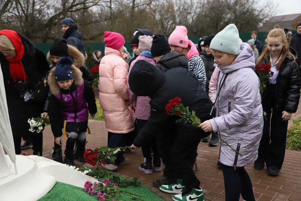 Торжественная церемония состоялась во сквере храма в честь Успения Пресвятой Богородицы в с. Ахлебинино, которую возглавил игумен Мефодий (Пронькин), секретарь Калужской епархии.