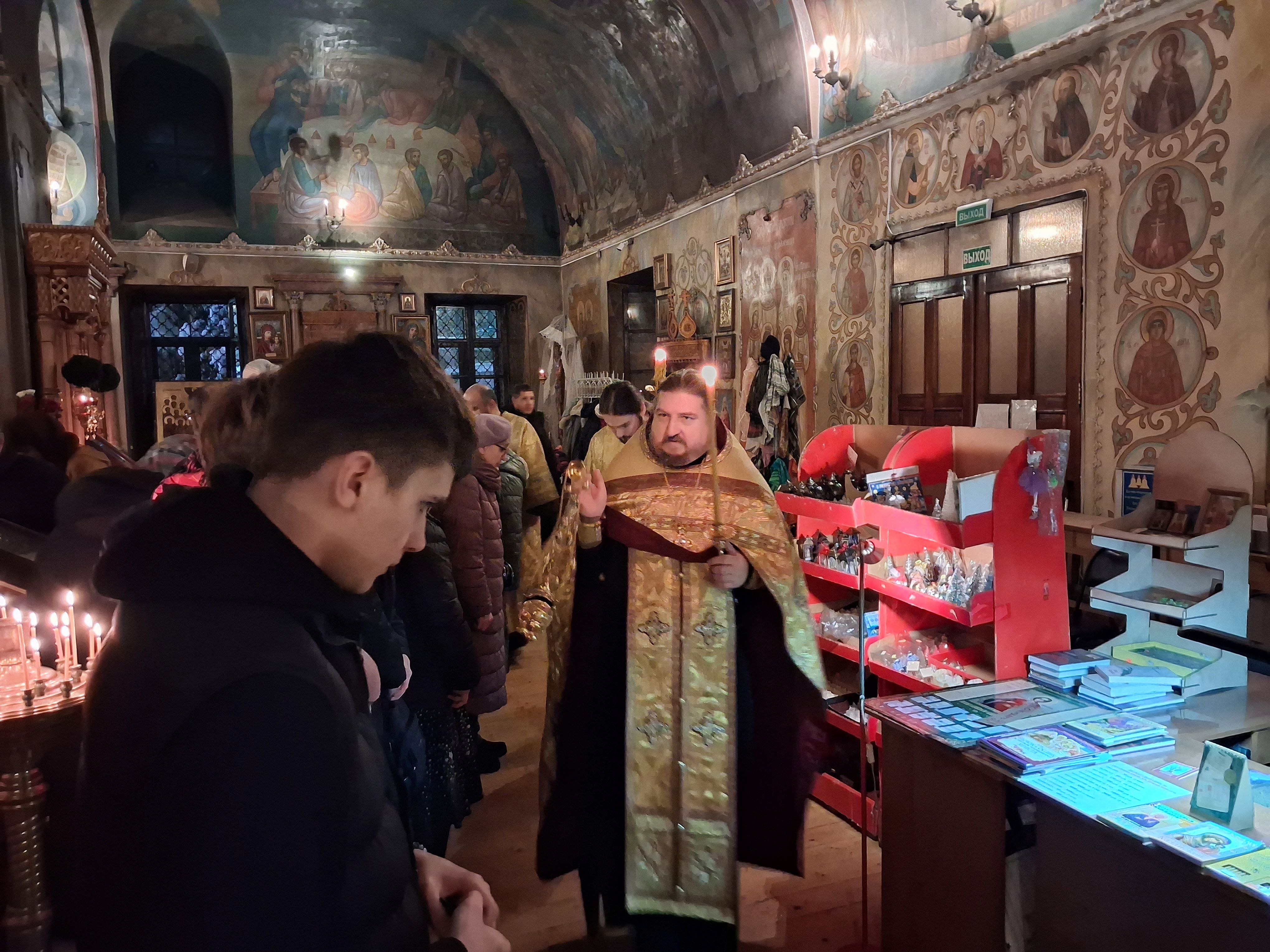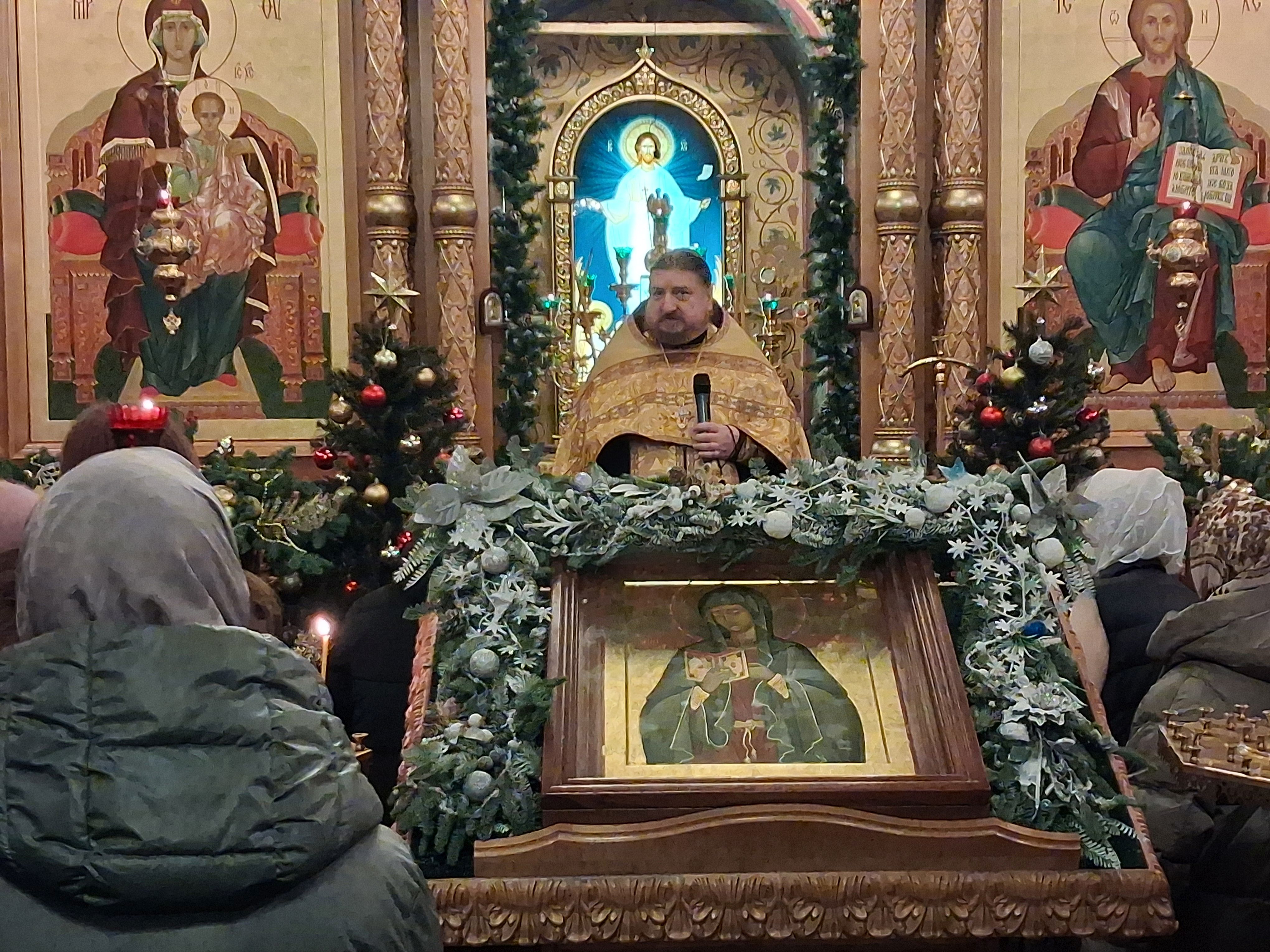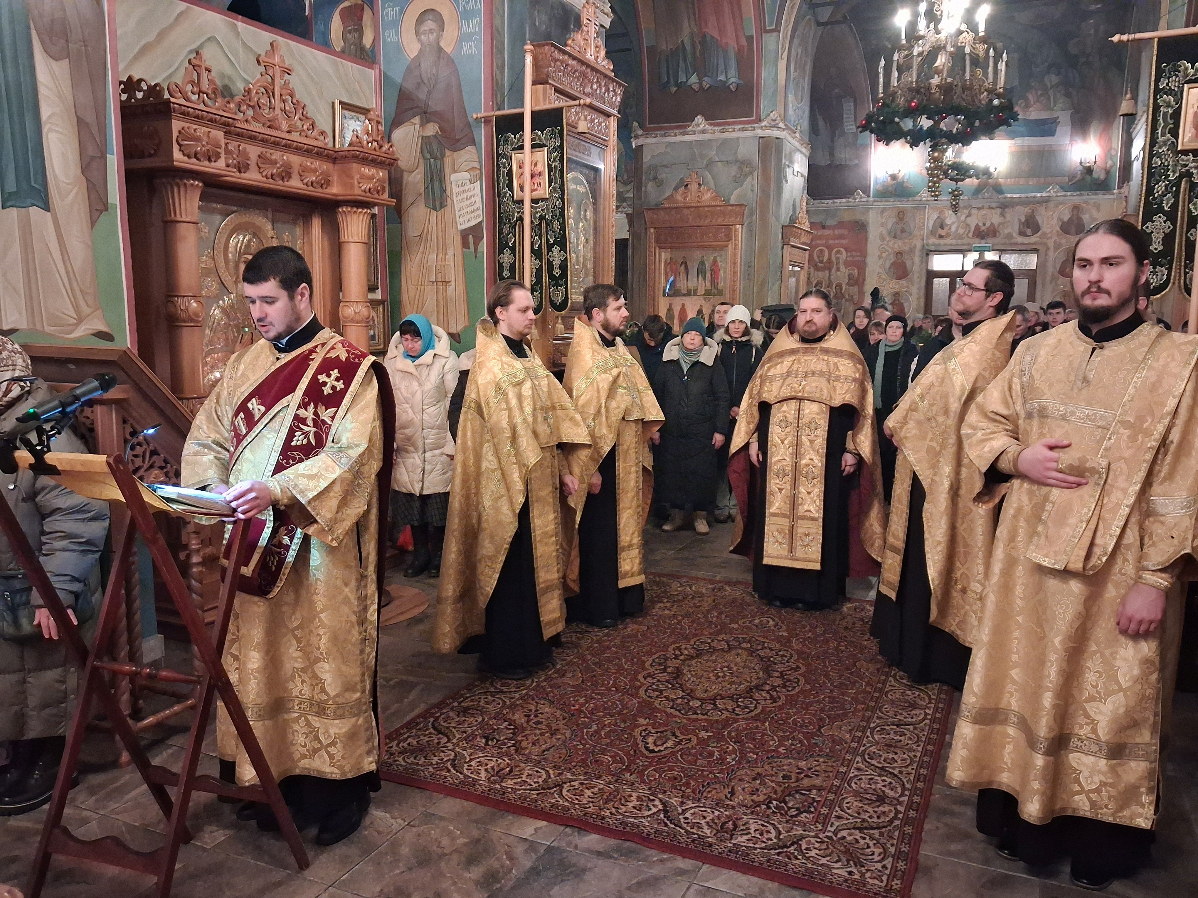 31 декабря, в храме святого пророка Иоанна Предтечи были совершены вечерня с пением акафиста Пресвятой Богородице пред иконой Ея "Калужская", соборно клиром храма, возглавил Богослужения настоятель храма, игумен Мефодий (Пронькин).