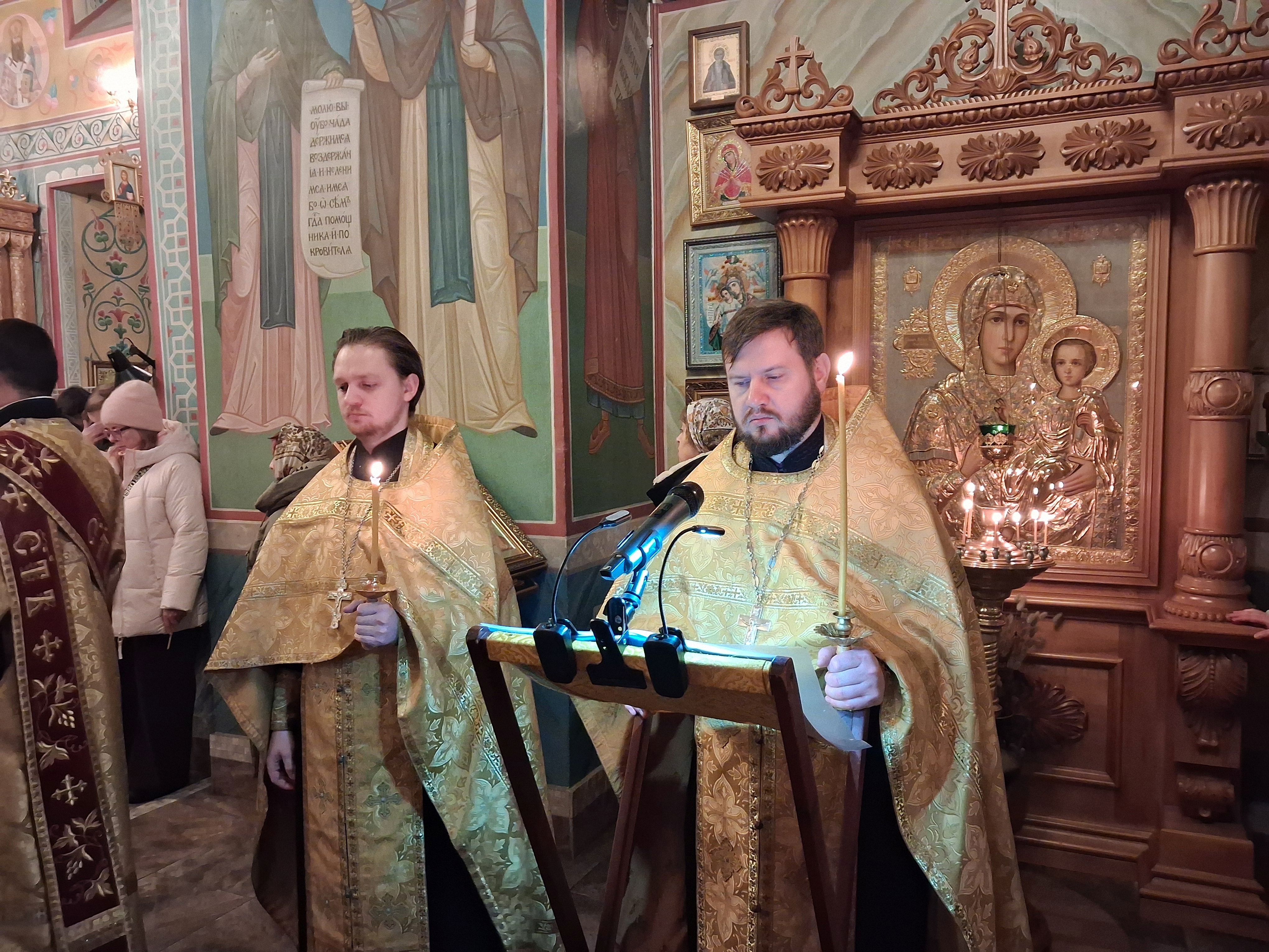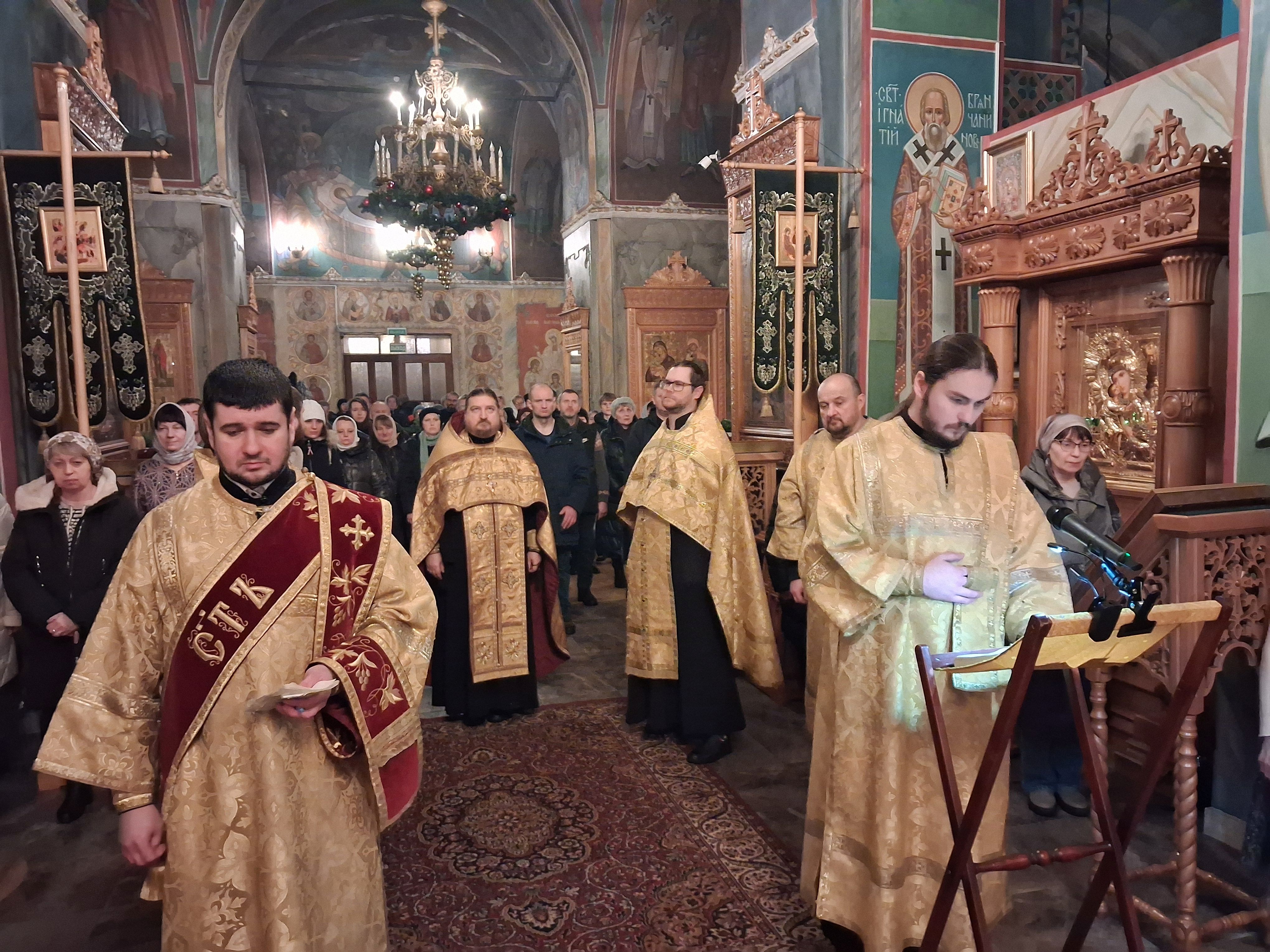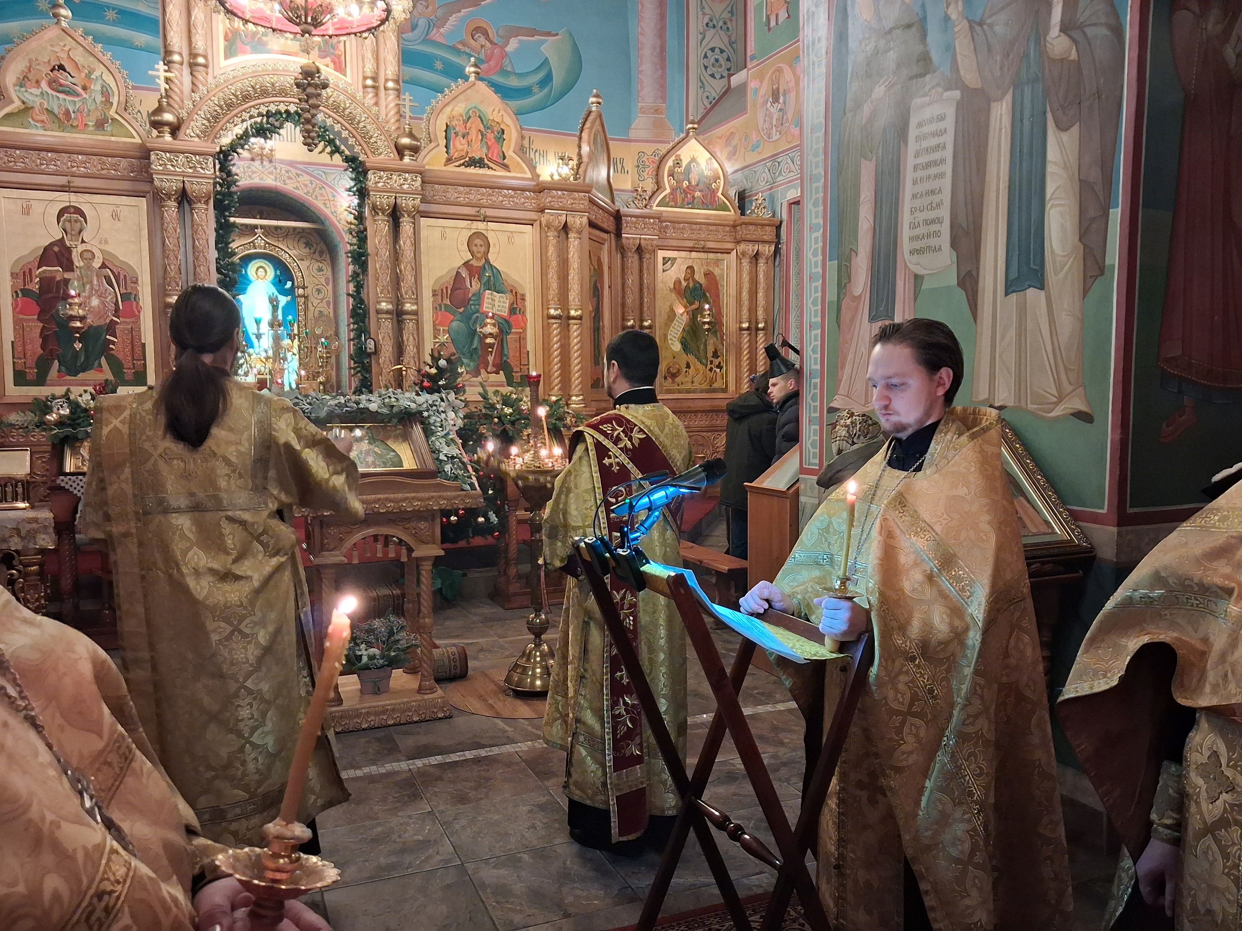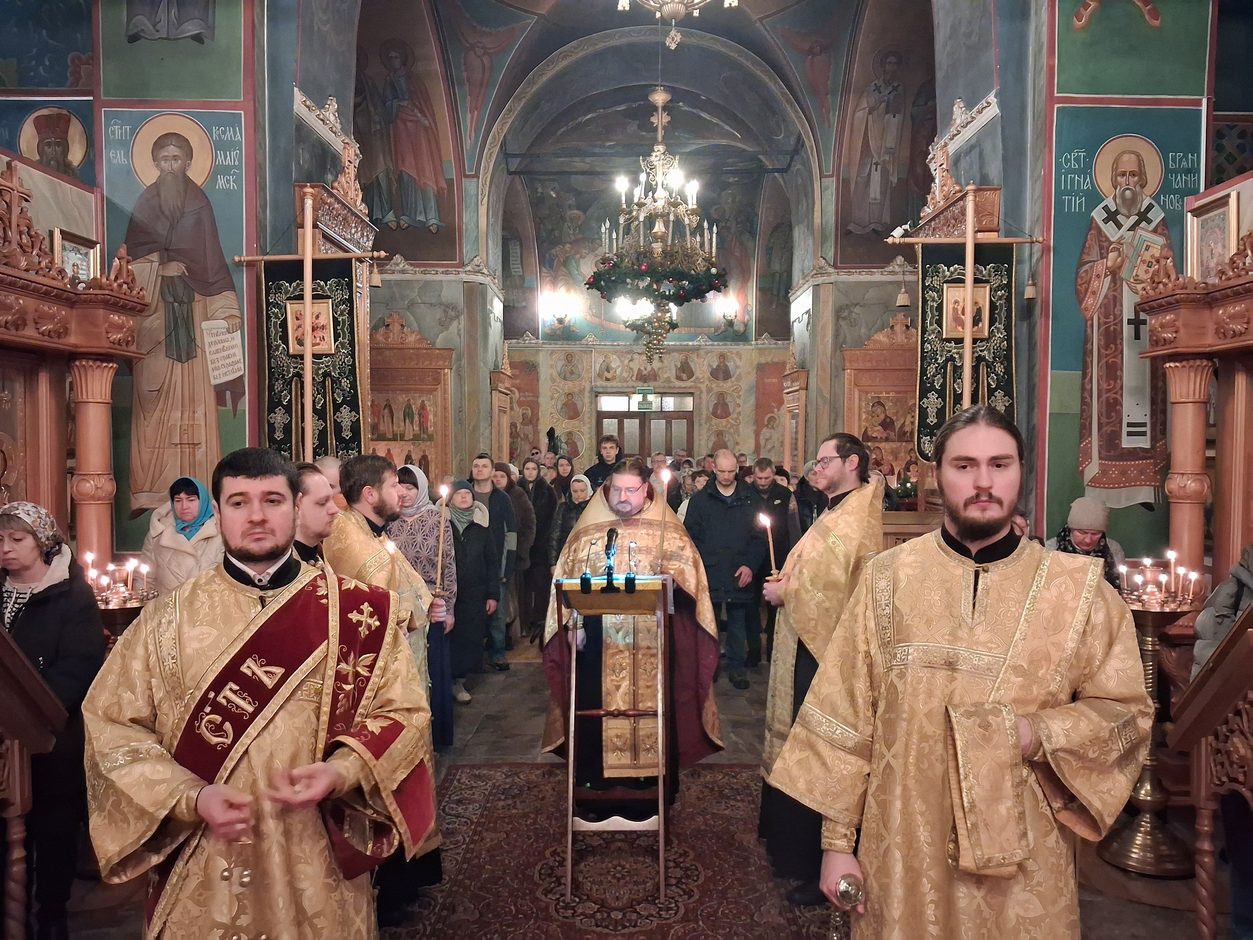 31 декабря, в храме святого пророка Иоанна Предтечи были совершены вечерня с пением акафиста Пресвятой Богородице пред иконой Ея "Калужская", соборно клиром храма, возглавил Богослужения настоятель храма, игумен Мефодий (Пронькин).