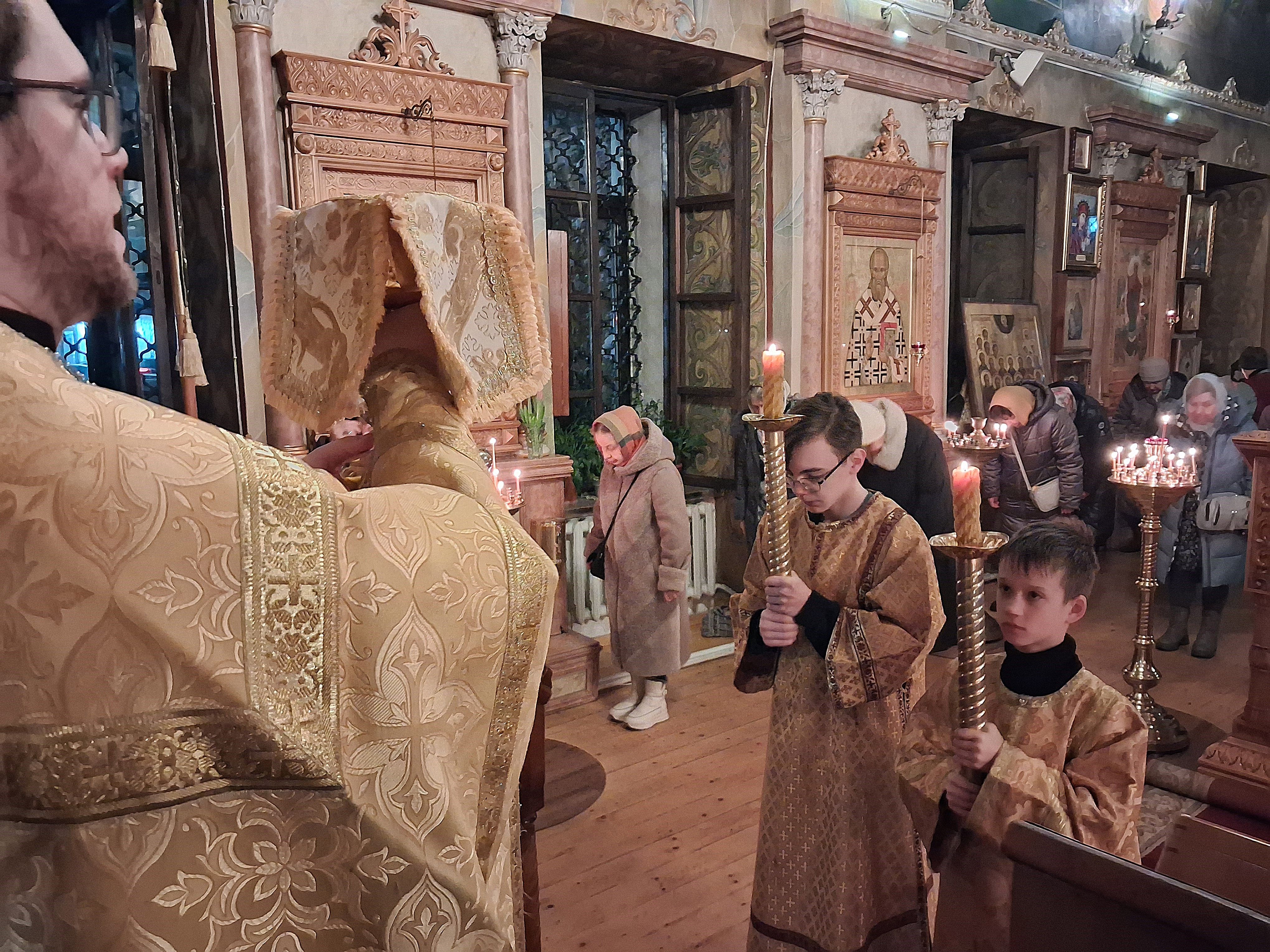 4 января, Неделя 30-я по Пятидесятнице, перед Рождеством Христовым, святых отец. В храме святого пророка Иоанна Предтечи были совершены воскресные богослужения. Всенощное бдение, совершенное накануне вечером собором духовенства храма, возглавил настоятель храма, игумен Мефодий (Пронькин).