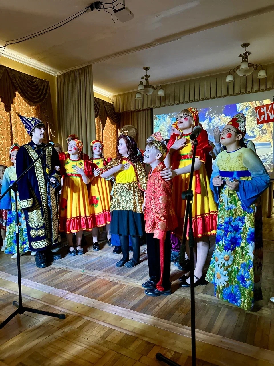 Ребята студии «Бумеранг» (педагог-режиссер Е.Е.Осипова) показали зрителям театрализованную постановку по пьесе Татьяны Петровой «По щучьему велению и Божьему благословению». Постановка получилась веселая и задорная, с танцами и песнями, исполняемыми ребятами студии, с яркими костюмами и необыкновенной по динамике и эмоциям игрой артистов разных возрастов.