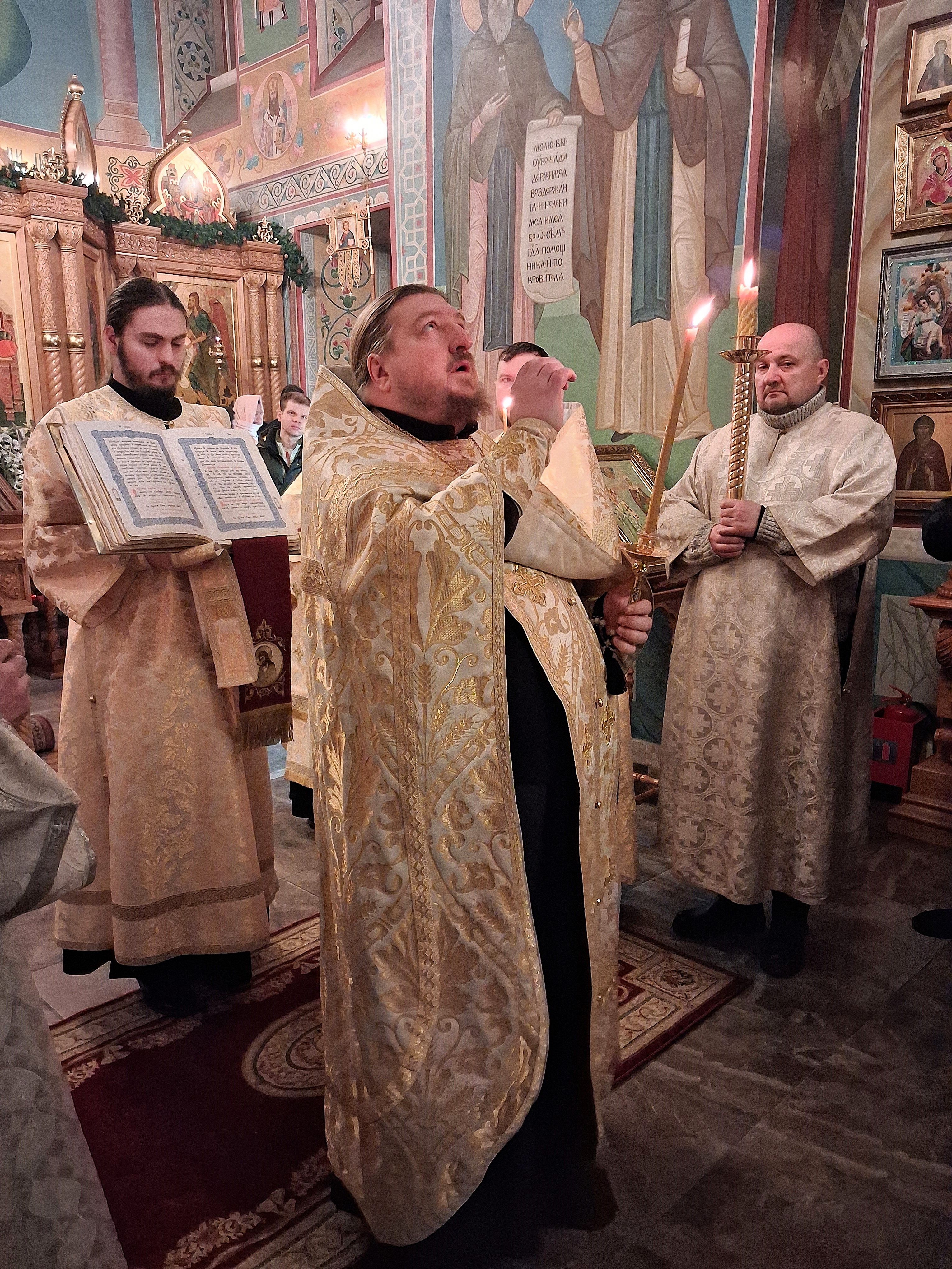 По отпусте литургии был совершен праздничный молебен пророку с чтением молитвы, затем отец настоятель обратился к присутствующим с проповедью.