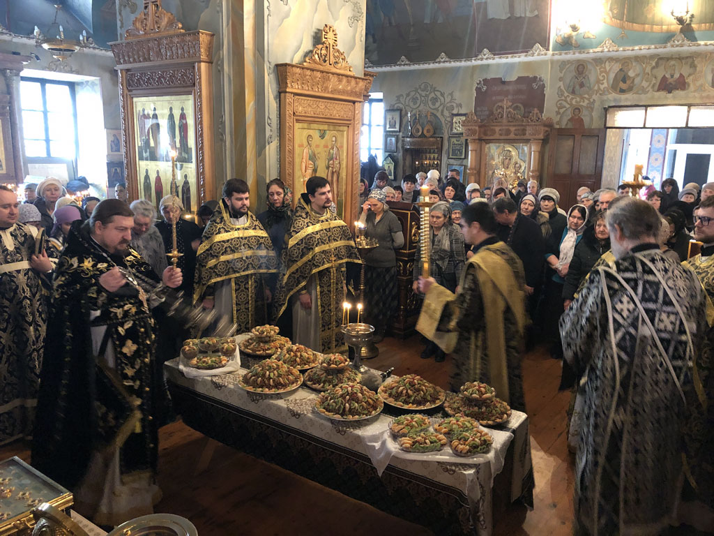 В Предтеченском храме был совершен постовой круг богослужений - утром была совершена утреня, часы, изобразительны и вечерня с литургией Преждеосвященных Даров, на которой причастилось Святых Тайн 96 прихожан. По заамвонной молитве, духовенство перед специально уготовленным столом с коливом совершило молебное пение святому мученику, закончившееся окроплением святой водой.
