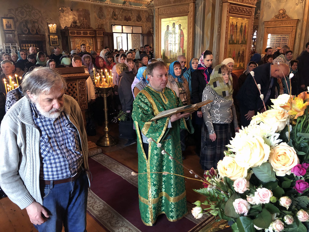 В семь часов утра была совершена ранняя литургия - предстоял иерей Павел Степанюк при диаконе Викторе Староста. Святых Христовых тайн приобщилось 226 прихожан. Желающим были окроплены святой водой вербочки. Исповедь совершал иерей Александр Беляев.
