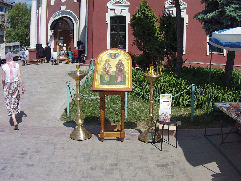 Отец настоятель обратился к присутствующим со словами приветствия и передал слово иерею Сергию Третьякову, курирующему в Калужской епархии культурные мероприятия. Священник подчеркнул важность совершенной миссии святыми Мефодием и Кириллом, не только для России, но и для всего славянского мира.