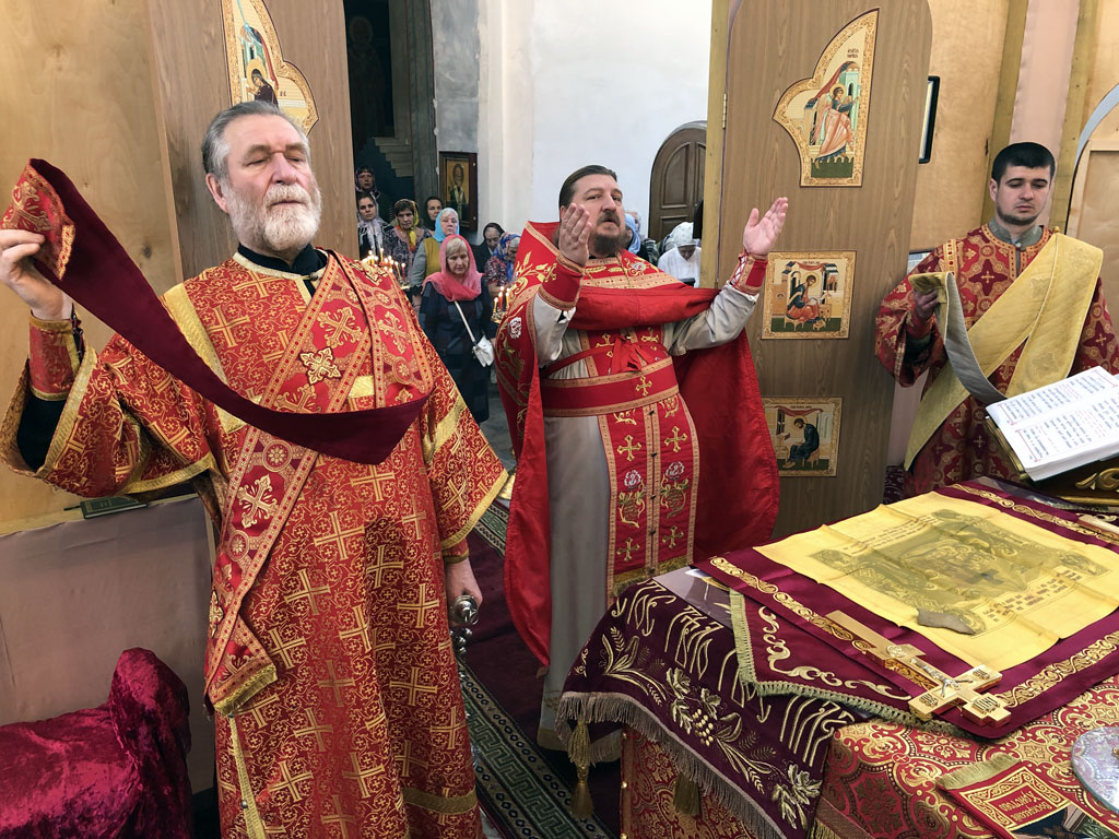 На сугубой ектении возносились прошения о единстве Церкви, затем отец настоятель вознес молитву о мире на Украине.