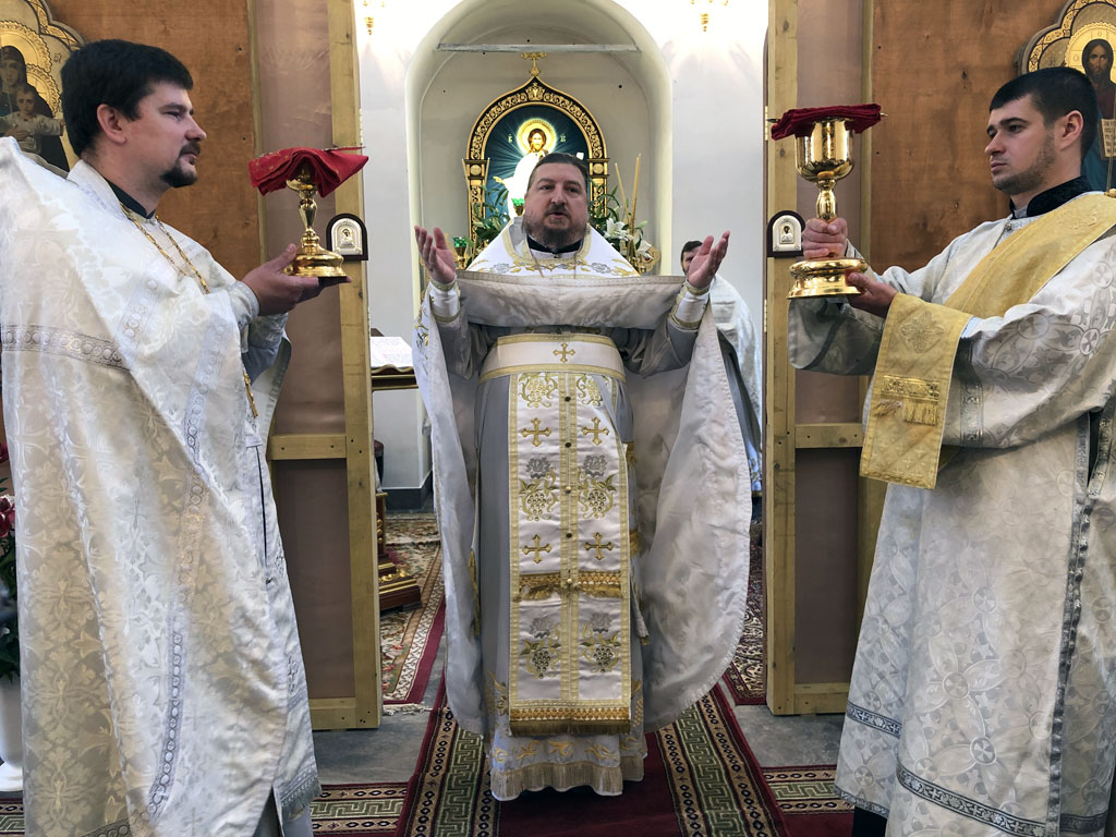 Литургию возглавил настоятель храма, секретарь Калужской епархии, секретарь Архиерейского совета Калужской митрополии, игумен Мефодий (Пронькин), ему сослужили: протоиерей Максим Немыченков, иерей Евгений Холявко, иерей Александр Беляев, иерей Павел Рогожин и диакон Виктор Староста, исповедь принимал иерей Павел Степанюк, он же произнёс проповедь на запричастном. Ко Причастию приступило 87 человек.