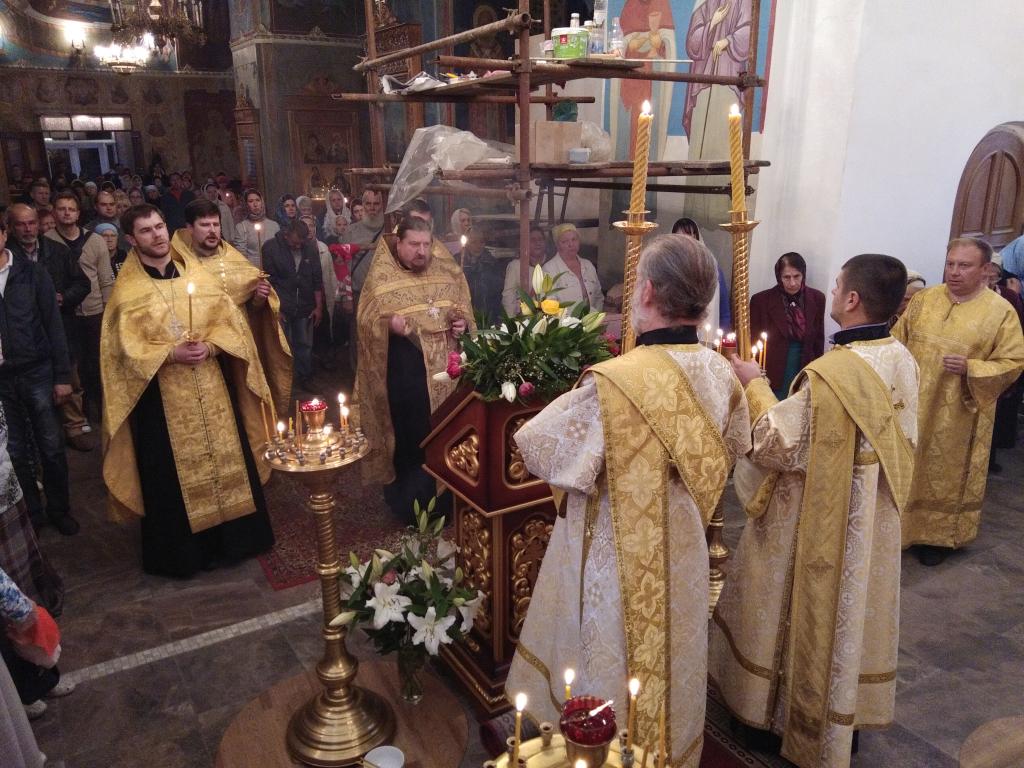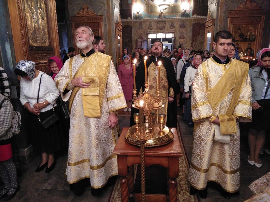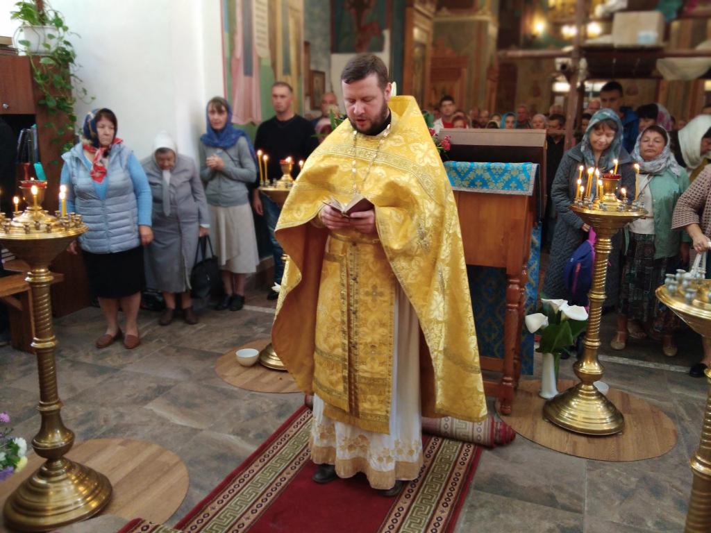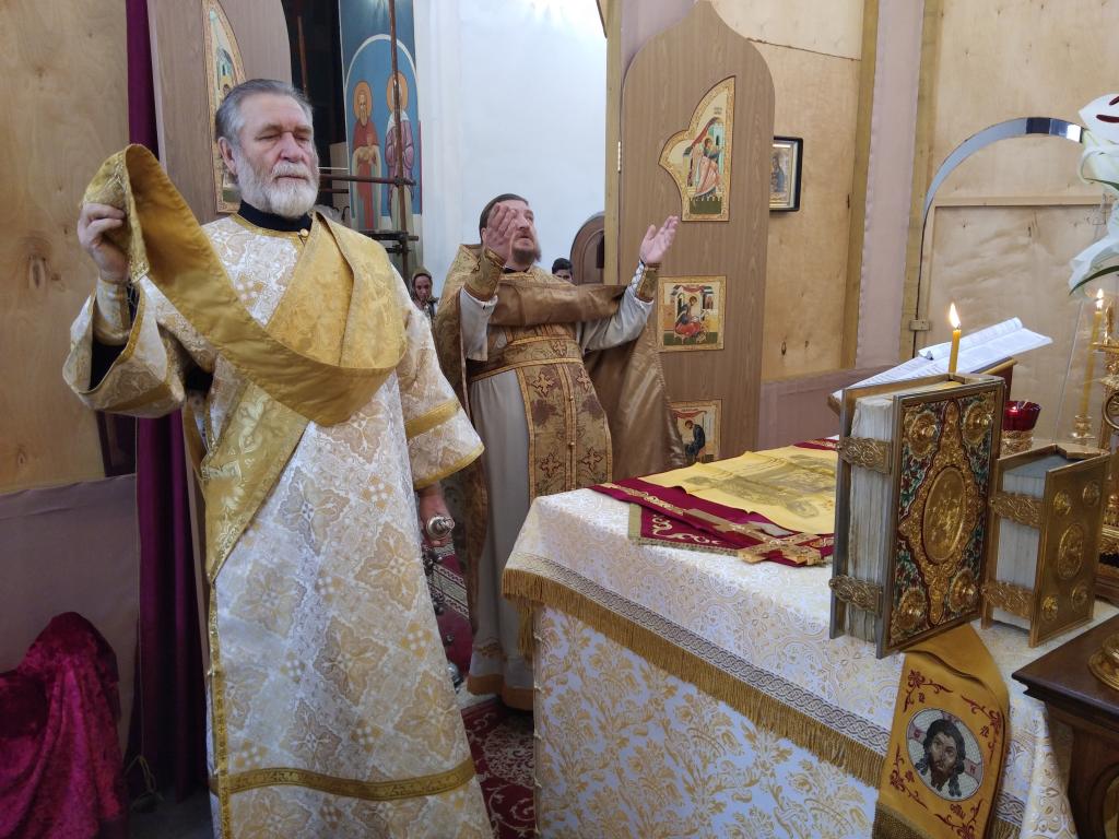 Позднюю литургию совершал игумен Мефодий (Пронькин), настоятель храма в сослужении иерея Александра Беляева и протодиакона Василия Савельева. По сугубой ектении возносилась молитва о Украине. Ко Причастию приступило 100 прихожан. По отпусте литургии был совершен молебен Царице Небесной, завершившийся пением всем храмом песнопения "Царице моя Преблагая...". Отец настоятель произнес проповедь перед собравшимися и преподал для целования напрестольный крест.