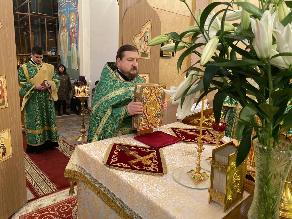 Утром была совершена Божественная литургия, предстоял игумен Мефодий (Пронькин), ему сослужили: протоиерей Алексей Пелевин, протоиерей Максим Немыченков, иерей Александр Беляев, иерей Павел Степанюк, диакон Виктор Староста.