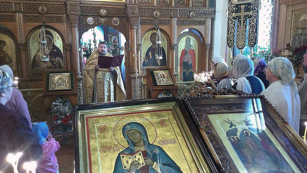 Накануне вечером, в субботу, игумен Мефодий (Пронькин) в сослужении иерея Александра Беляева совершил всенощное бдение с литией.