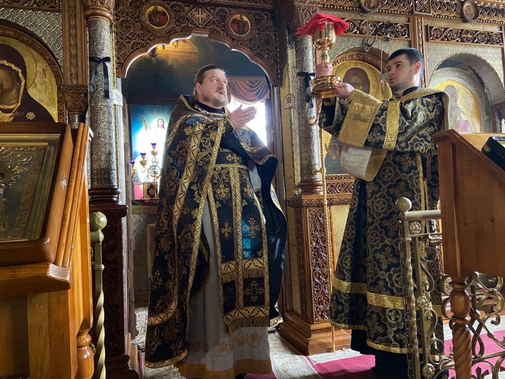 Богослужение возглавил игумен Мефодий (Пронькин), отцу настоятелю сослужили иерей Евгений Холявко, иерей Александр Беляев, иерей Павел Рогожин, диакон Виктор Староста.