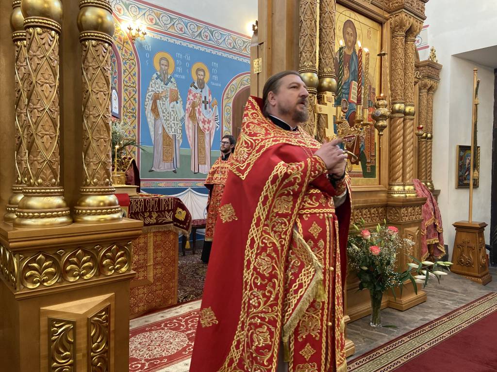 19 апреля, вечером в храме святого пророка Иоанна Предтечи была совершена Пасхальная Вечерня. Богослужение совершалось клиром храма соборно - предстоял игумен Мефодий (Пронькин), настоятель храма, ему сослужили иерей Евгений Холявко, иерей Павел Рогожин, иерей Павел Степанюк и диакон Виктор Староста.