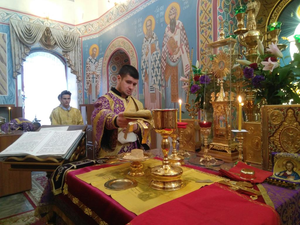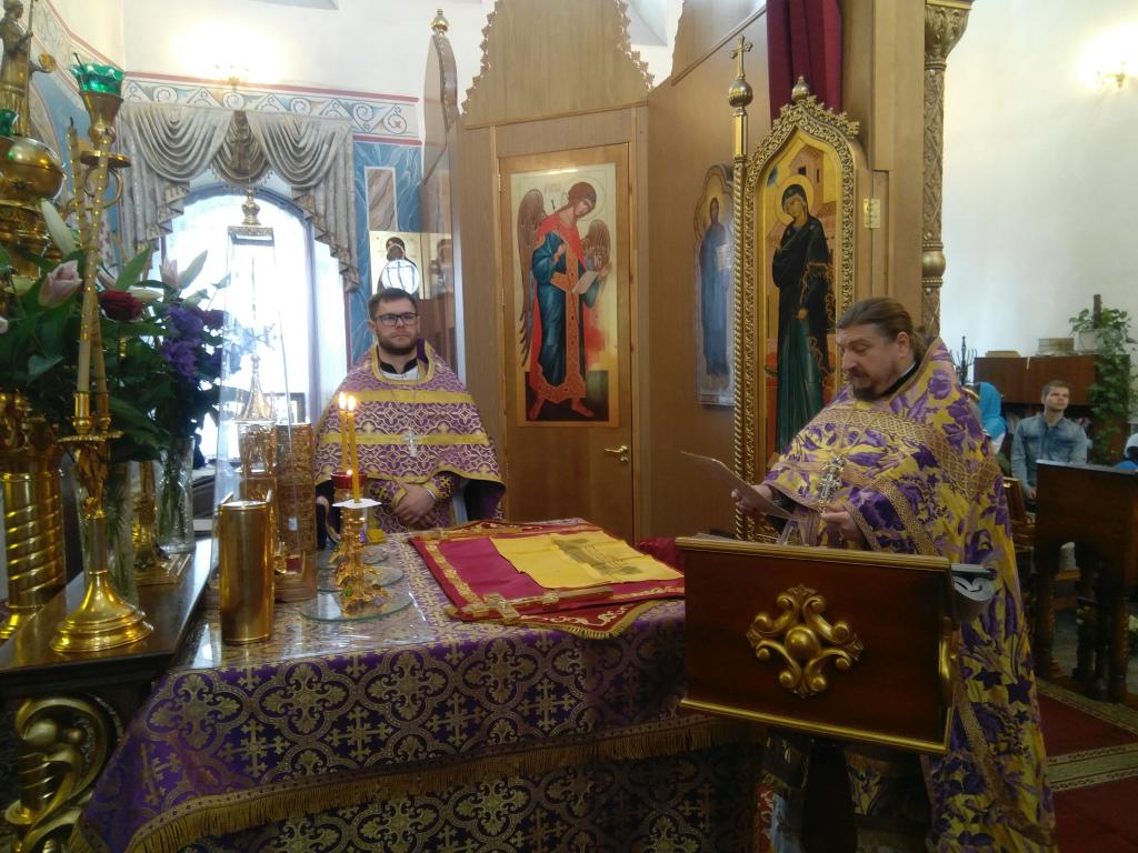 Утром, раннюю литургию совершил иерей Евгений Холявко, помогал диакон Виктор Староста - по Евангельском чтении священник произнёс проповедь. На сугубой ектении возносились молитвы об избавлении от коронавируса. По отпусте литургии был совершен чин славления Кресту Господню.