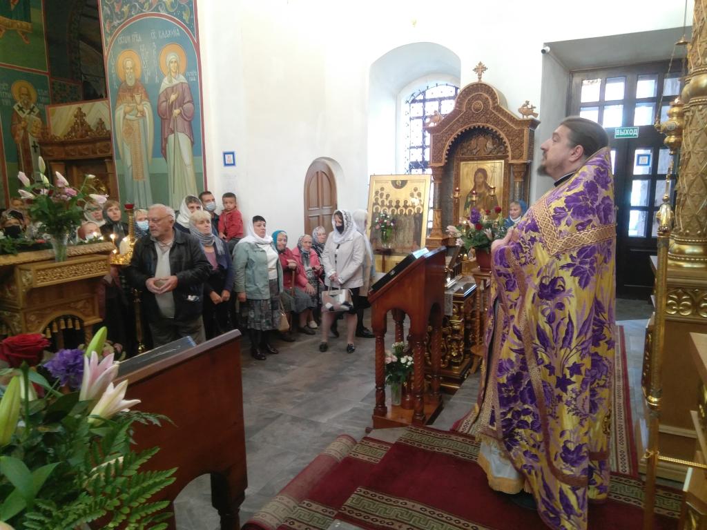 Позднюю литургию совершил игумен Мефодий (Пронькин) в сослужении иерея Павла Степанюка и диакона Виктора Старосты. За богослужением сугубо молились о болящих коронавирусом, об избавлении от моровой язвы. По отпусте литургии был совершен чин поклонения Животворящему Кресту и отец настоятель обратился к собравшимся с проповедью.