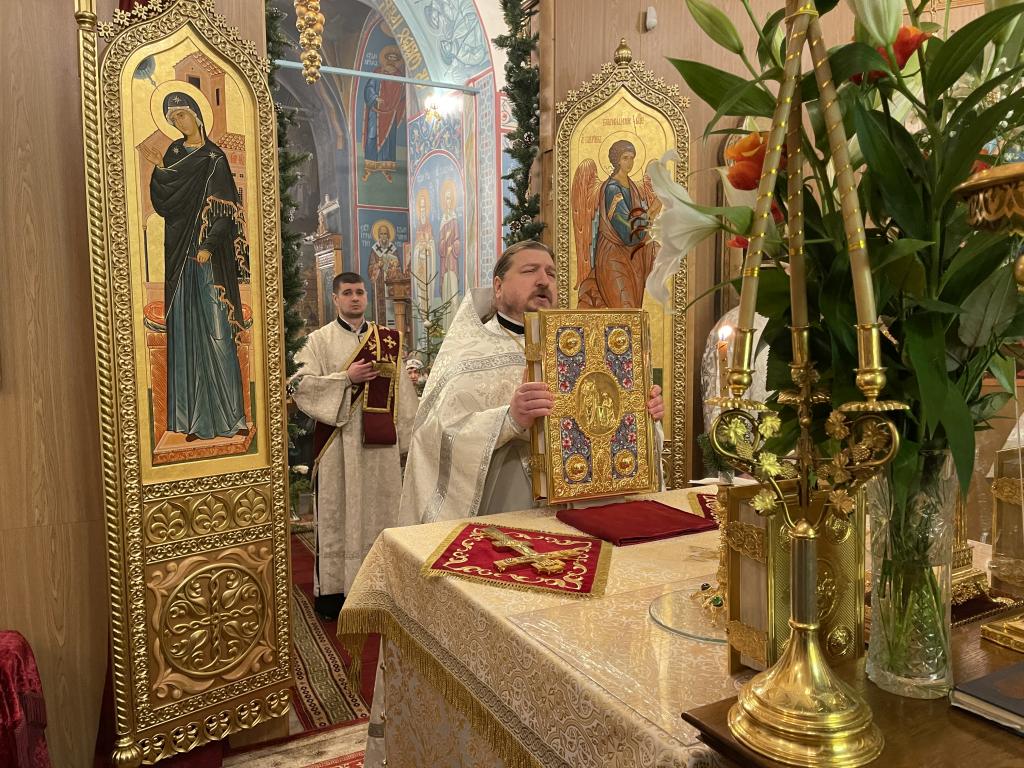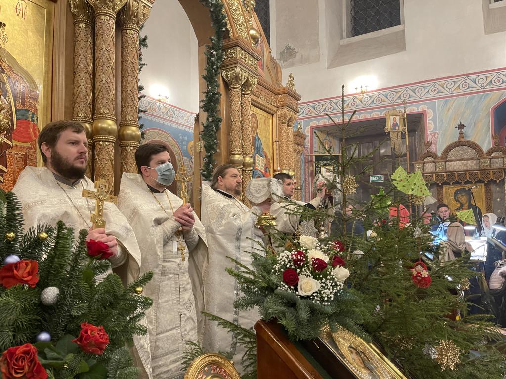 На сугубой ектении возносились молитвы о мире на Украине и избавлении от коронавируса, по запричастном было оглашено Рождественское послание Святейшего Патриарха Московского и всея Руси Кирилла архипастырям, пастырям, диаконам, монашествующим и всем верным чадам Русской Православной Церкви.