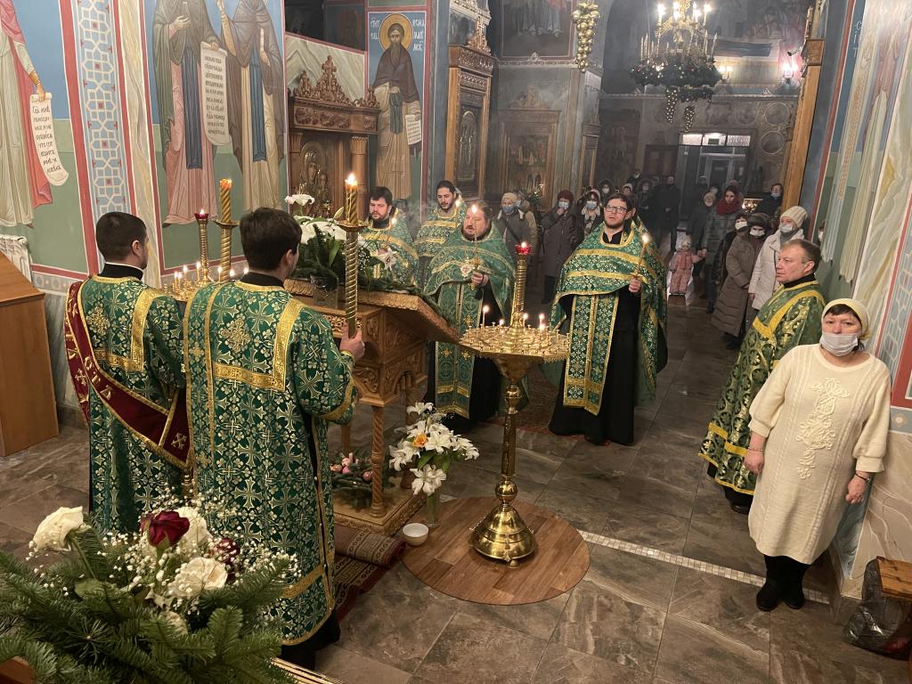 За литургией отцу настоятелю сослужили протоиерей Максим Немыченков, иерей Александр Беляев, иерей Павел Рогожин, диакона Виктор Староста и Вячеслав Бахаев. Исповедь принимал иерей Павел Степанюк.