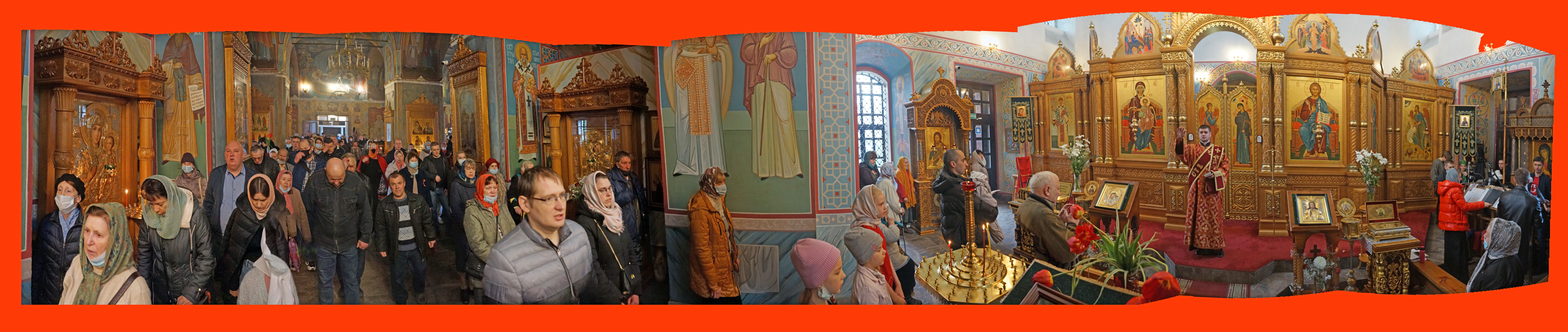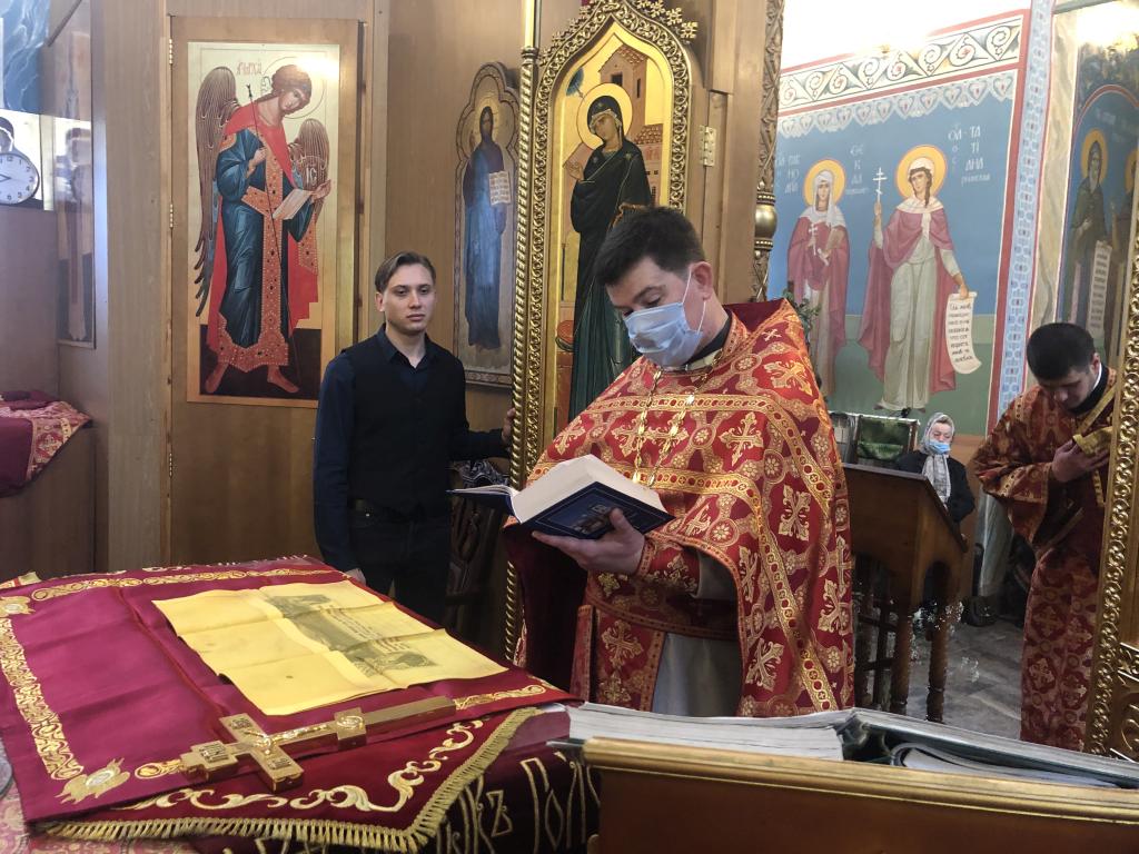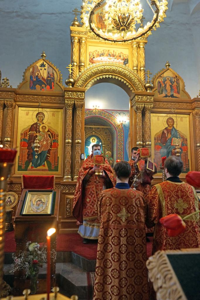 Позднюю литургию совершал иерей Евгений Холявко при диаконе Викторе Старосте. За богослужением возносились молитвы о тяжкоболящих и избавлении от коронавируса, а также особые прошения об усопших воинах.