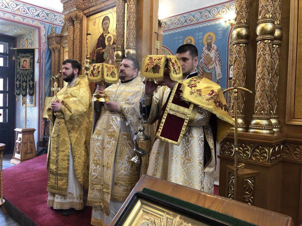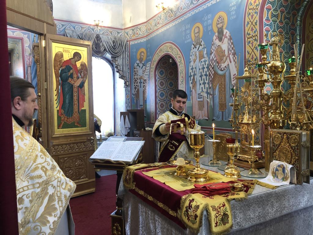 Раннюю литургию совершил иерей Павел Степанюк, помогал диакон Вячеслав Бахаев.