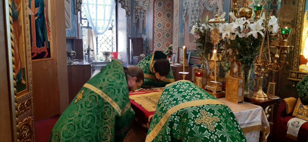 За богослужением возносились молитвы о недужных и избавлении от морового поветрия (коронавируса).