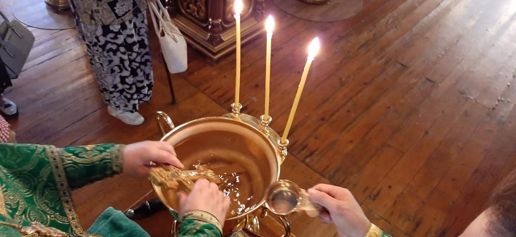 По отпусте литургии был совершен водосвятный молебен и отец настоятель обратился к собравшимся с проповедью.