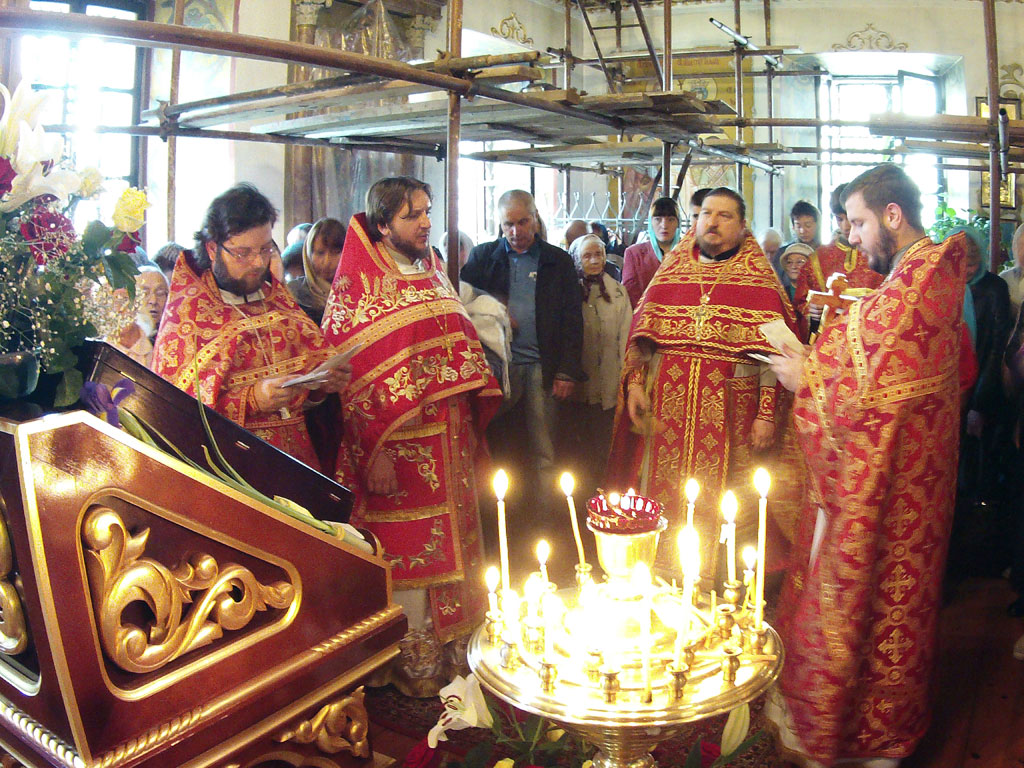 В сам день праздника клиром храма совершена Божественная литургия. Предстоял настоятель храма, секретарь калужской епархии игумен Мефодий (Пронькин). Поздравить с престольным праздником и сослужить пришли клирики калужских храмов - иеромонахи Василий (Скоренко) и Алексий (Щукин).