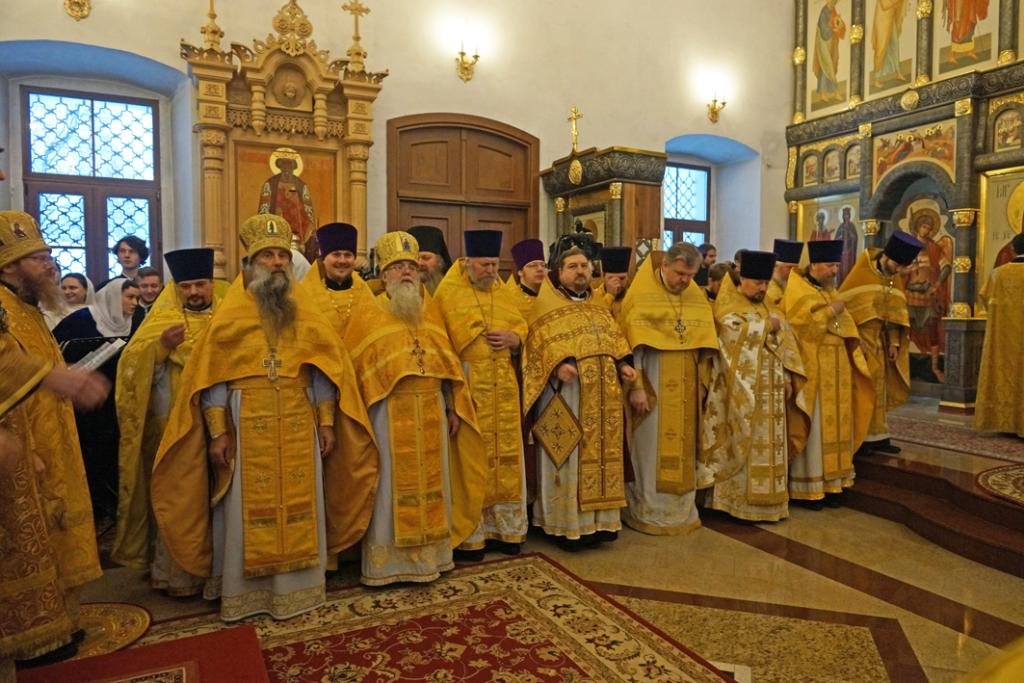 За богослужением также предстояли архиепископ Песоченский и Юхновский Максимилиан, епископ Козельский и Людиновский Никита, епископ Тарусский Иосиф.