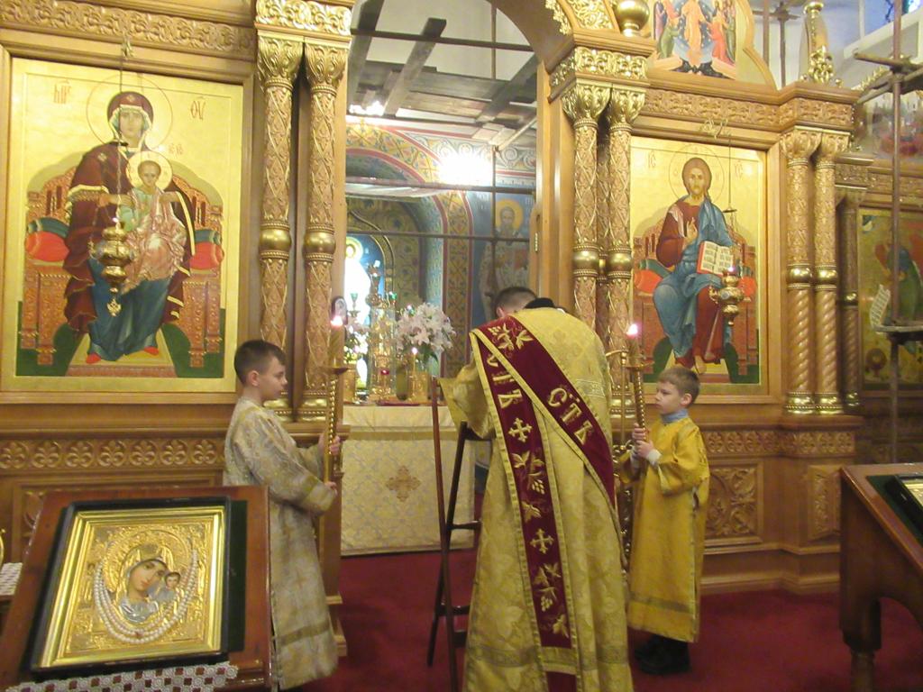 Позднюю литургию возглавил игумен Мефодий (Пронькин), в сослужении иерея Александра Беляева и диакона Виктора Старосты. За богослужениями возносились молитвы о Единстве Церкви, избавлении от морового поветрия и исцелении тяжкоболящих.