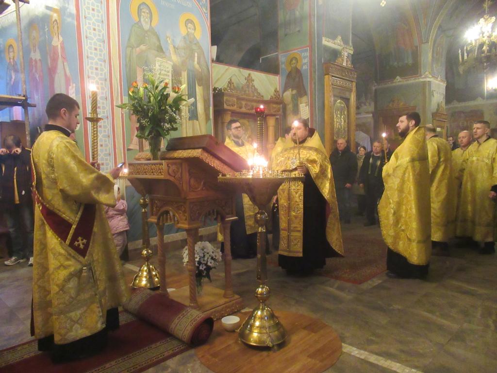Позднюю литургию совершил игумен Мефодий (Пронькин) в сослужении иерея Павла Степанюка и диакона Виктора Старосты. За литургиями, на сугубой ектении возносились молитвы об избавлении от коронавируса, об исцелении тяжкоболящих, о мире на Украине.