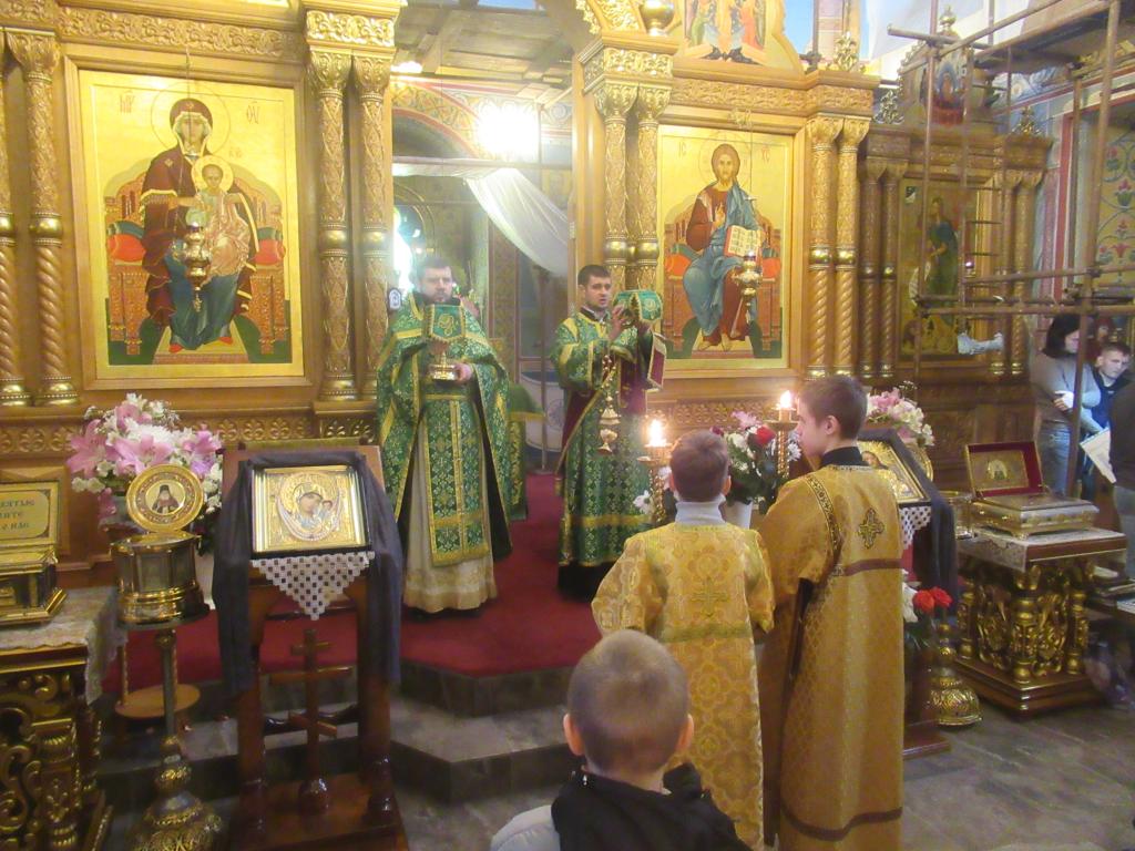 Позднюю литургию совершил иерей Александр Беляев, в сослужении диакона Виктора Старосты.
