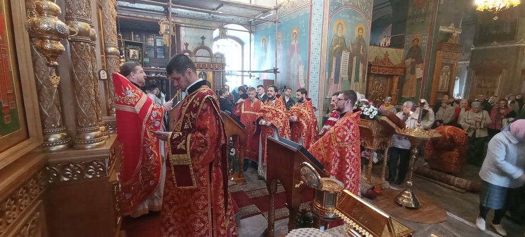 Поздравлять отца настоятеля, празднующего тезоименитство в этот день, начали ещё задолго до литургии - благодарные прихожане стекались с разных уголков епархии, поздравить дорогого батюшку с праздником, подарить цветы.