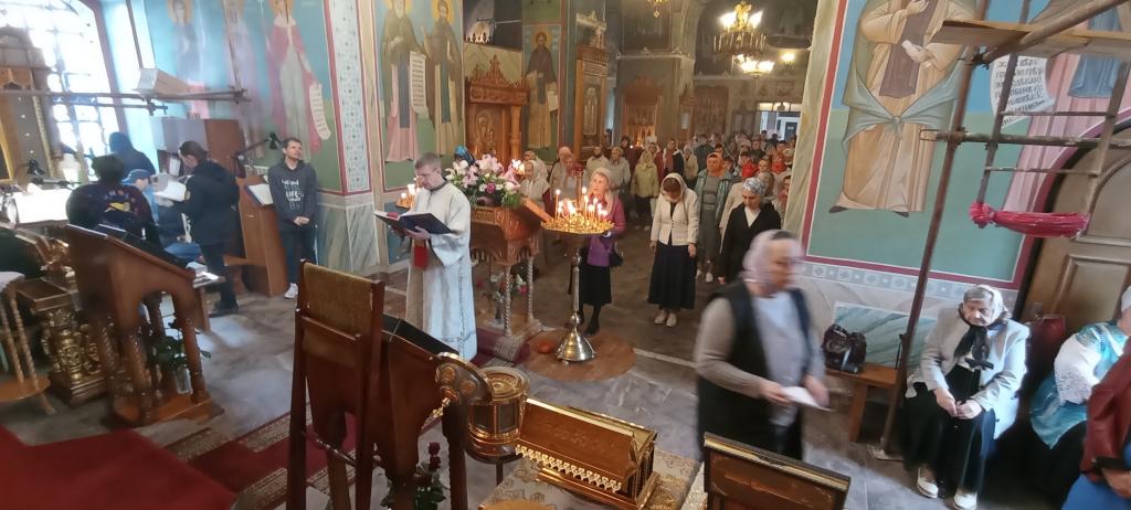 Утром раннюю литургию совершил иерей Павел Рогожин, позднюю литургию игумен Мефодий (Пронькин) в сослужении иерея Александра Беляева и диакона Виктора Старосты.