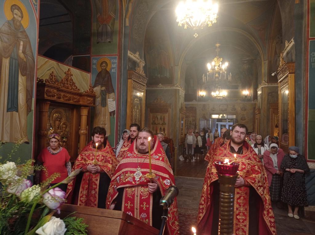 Утром была совершена одна Божественная литургия - предстоял протоиерей Максим Немыченков, сослужили ему иерей Александр Беляев, иерей Павел Рогожин, иерей Павел Степанюк и диакон Виктор Староста.