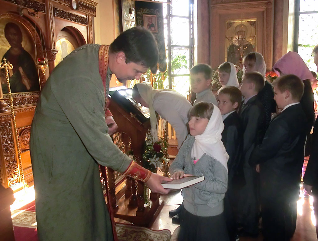 В храме для ребят был совершен молебен "на начало учения отроков" - так как не все смогли побывать в храмах перед началом учебного года. После молебна дети направились в библиотеку школы, где для них была проведена интересная беседа. Также каждому посетившему молебен, были подарены специальные издания Писания "Новый Завет и Псалтырь".
