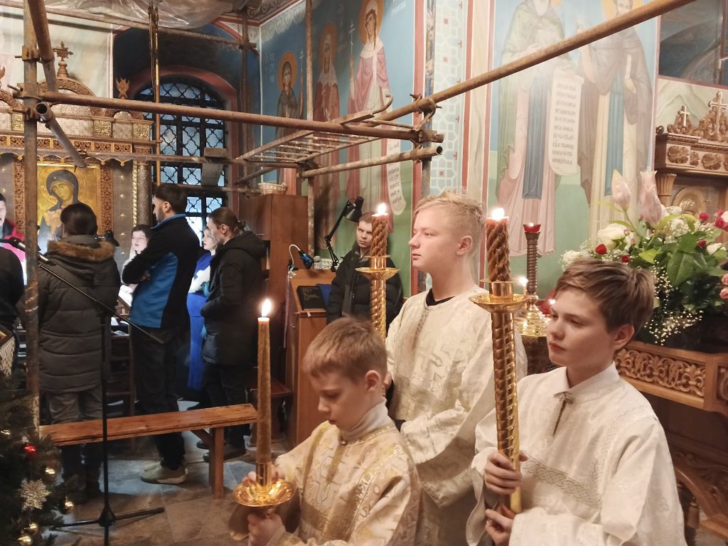 Совершил литургию иерей Павел Степанюк , исповедь принимал иерей Александр Беляев, помогал диакон Виктор Староста. Во время службы было зачитано Рождественское послание Высокопреосвященнейшего Климента, Метрополита Калужского и Боровского.