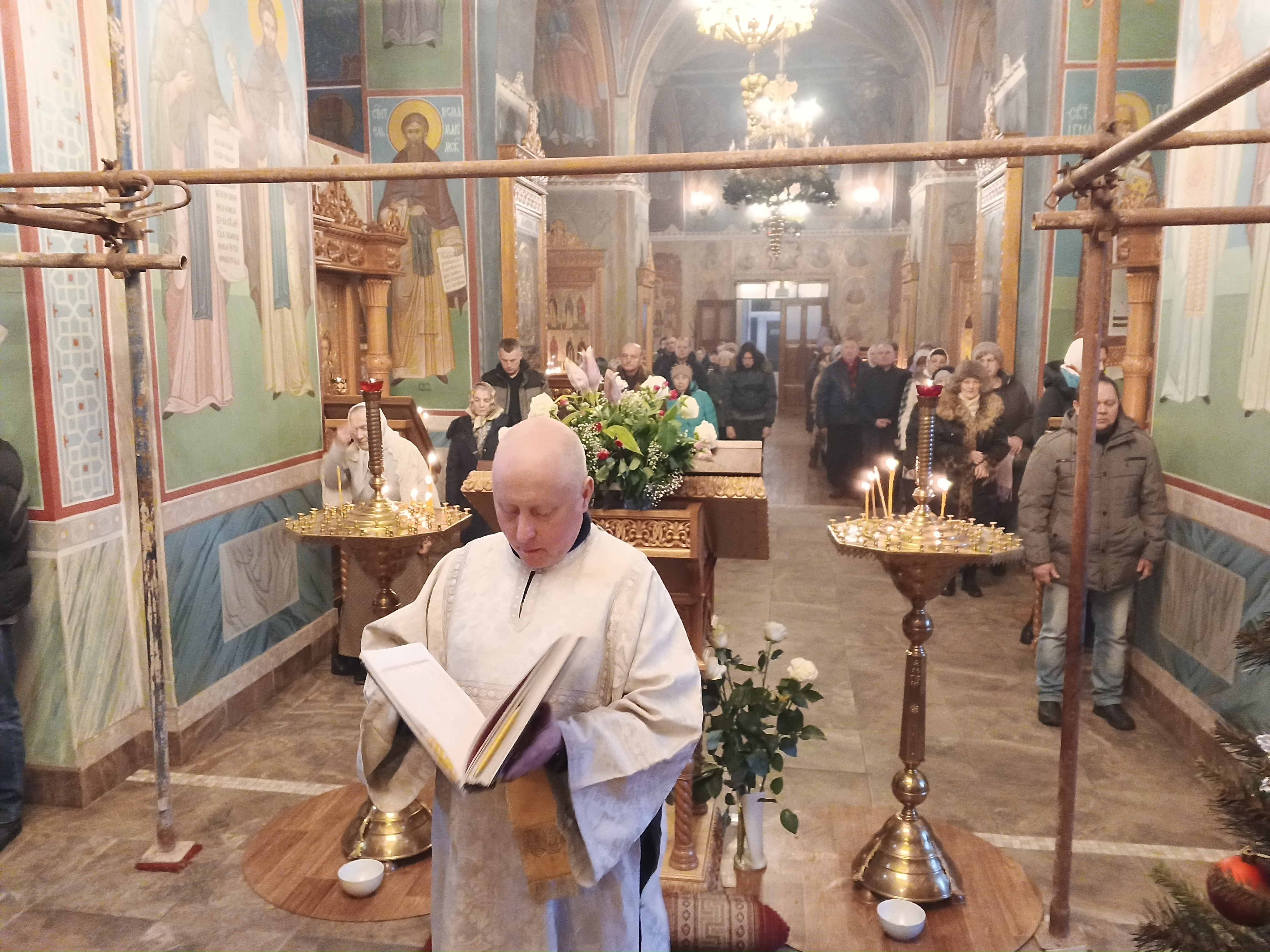 Позднюю Божественную литургию в центральном приделе совершил игумен Мефодий (Пронькин) в сослужении иерея Александра Беляева и диакона Виктора Старосты.