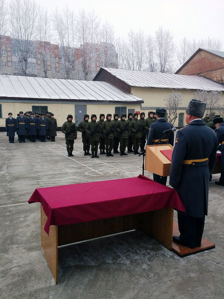 6 декабря в субботу клирик храма святого пророка Иоанна Предтечи священник Сергий Бескоровайный присутствовал в одной из Калужских частей на принятии присяги призывниками.