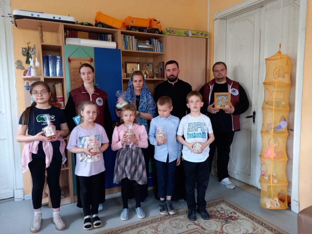 Участники молодёжного движения "Родные берега", действующего при храме в честь Иоанна Предтечи, посетили Калужский областной центр социальной помощи семье и детям "Надежда" с пасхальными поздравлениями и подарками.