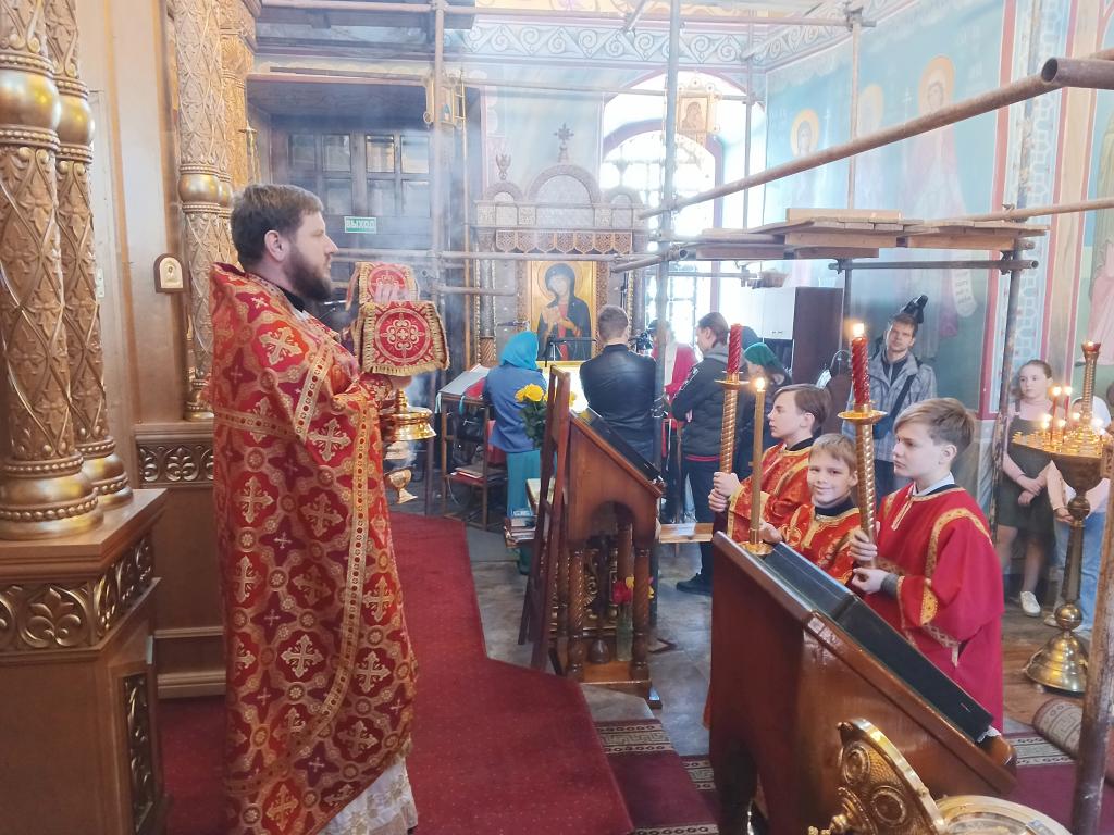 Позднюю литургию совершил иерей Александр Беляев при диаконе Викторе Старосте, исповедь принимал иерей Павел Степанюк. По заамвонной молитве был совершен Крестный ход, по окончании которого отец Александр произнес проповедь и преподал крест для целования.