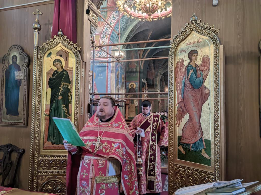 Позднюю литургию возглавил игумен Мефодий (Пронькин), настоятель храма, секретарь Калужской епархии, сослужили ему иерей Александр Беляев и диакон Виктор Староста.