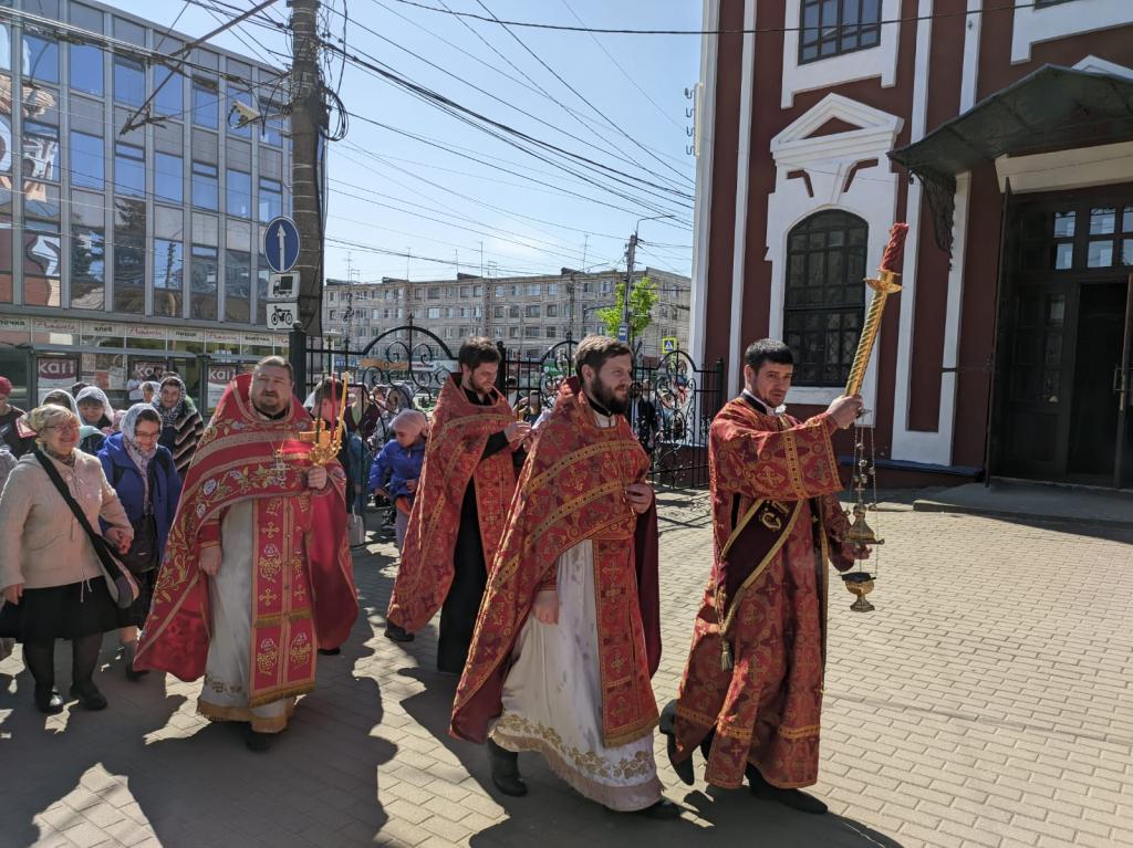 По заамвонной молитве был совершен Пасхальный Крестный ход с чтением молитвы преподобному.