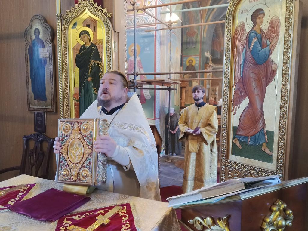 Раннюю литургию в приделе преподобного Сергия Радонежского совершил иерей Александр Беляев, помогал диакон Тимофей Вишняков, по отпусте священник произнес проповедь.