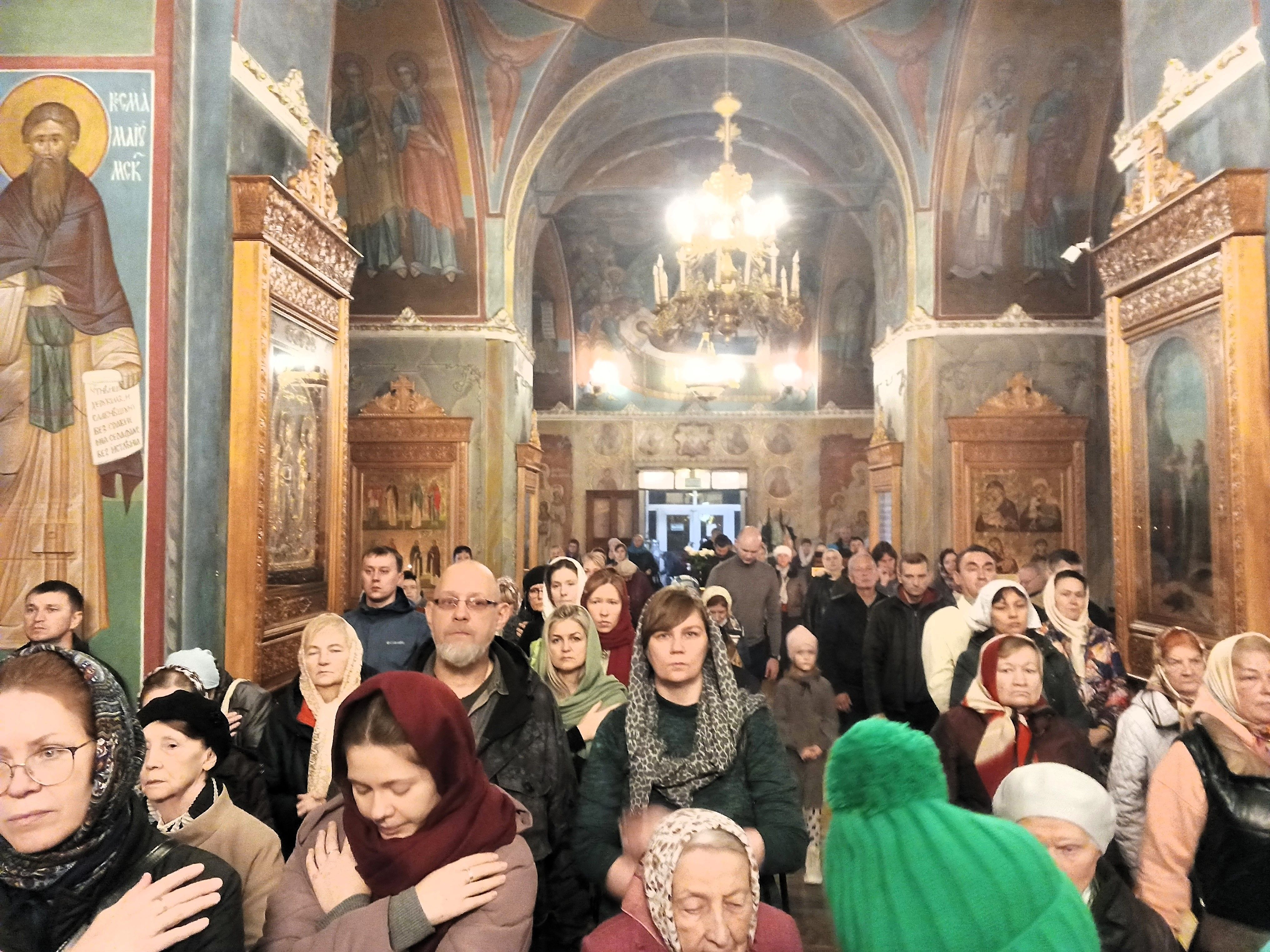 В центральном приделе позднюю Божественную литургию совершил игумен Мефодий (Пронькин) в сослужении иерея Павла Степанюка и диакона Виктора Старосты.