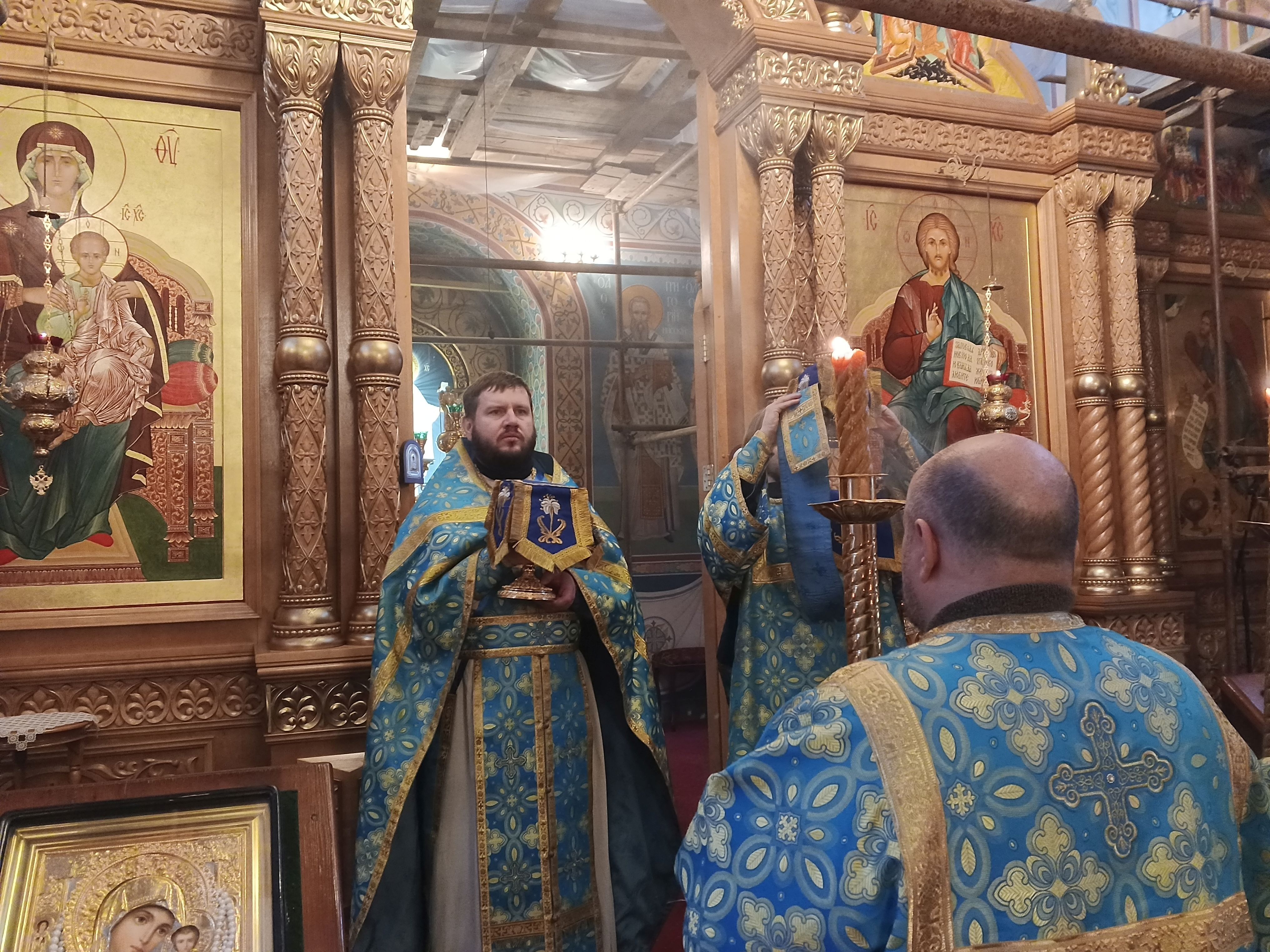 Позднюю литургию, в центральном пределе, совершил иерей Александр Беляев в сослужении диакона Тимофея Вишнякова. Исповедь принимал иерей Павел Степанюк.
