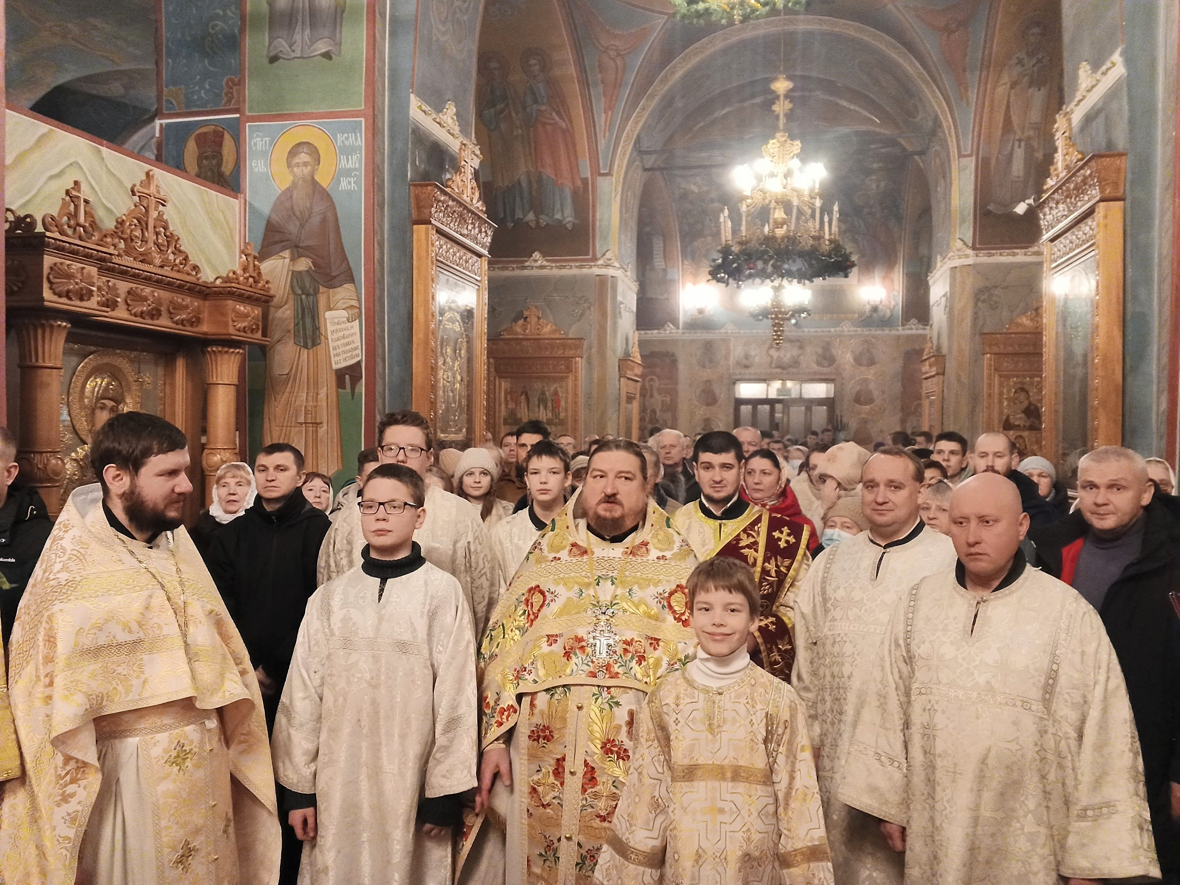 Совершил литургию иерей Павел Степанюк , исповедь принимал иерей Анатолий Амбросимов, помогал диакон Тимофей Вишняков. Во время службы было зачитано Рождественское послание Высокопреосвященнейшего Климента, Митрополита Калужского и Боровского.
