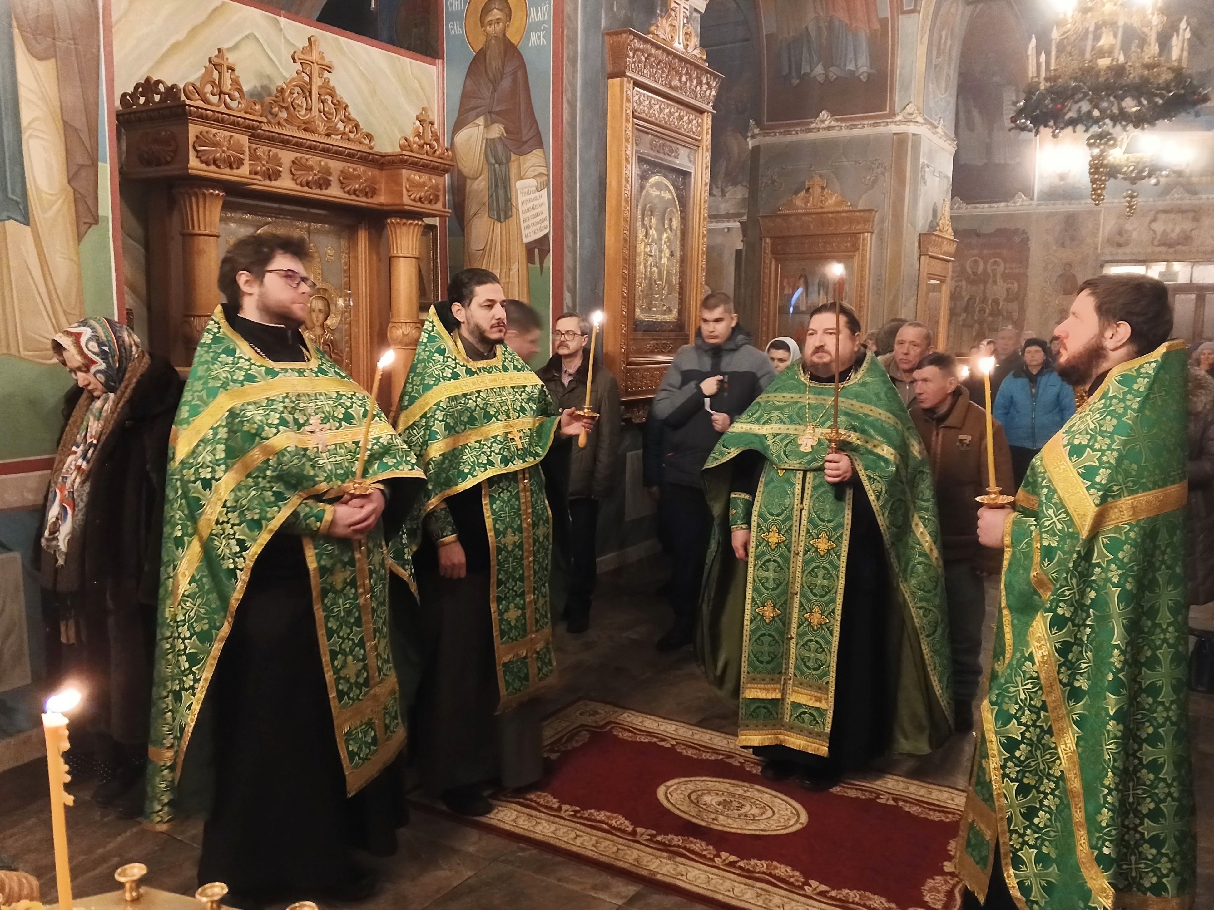 Утром состоялась Божественная литургия. которую совершил игумен Мефодий (Пронькин), сослужили ему, протоиерей Максим Немыченков, иерей Александр Беляев, иерей Павел Степанюк, диакон Виктор Староста и диакон Тимофей Вишняков.
